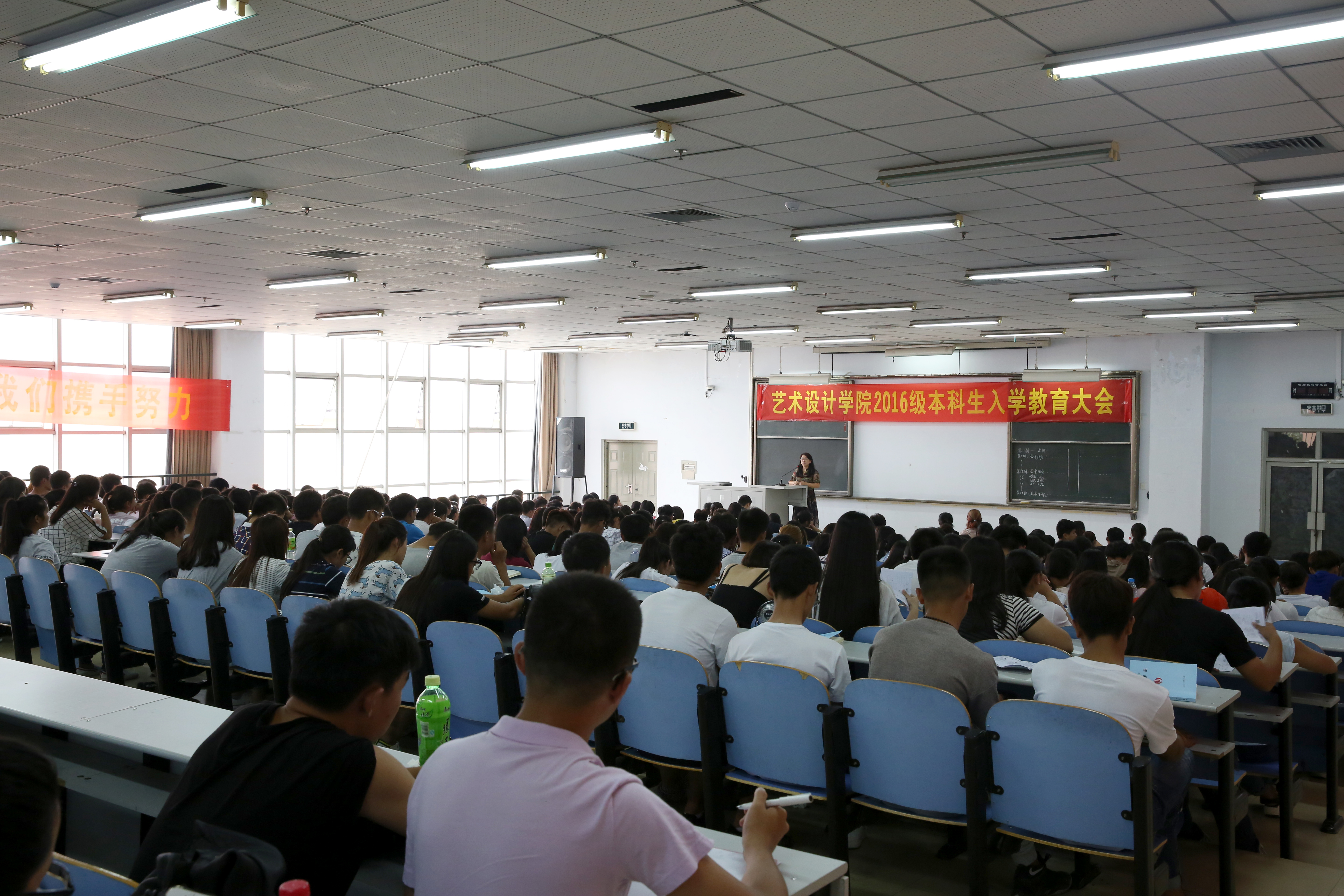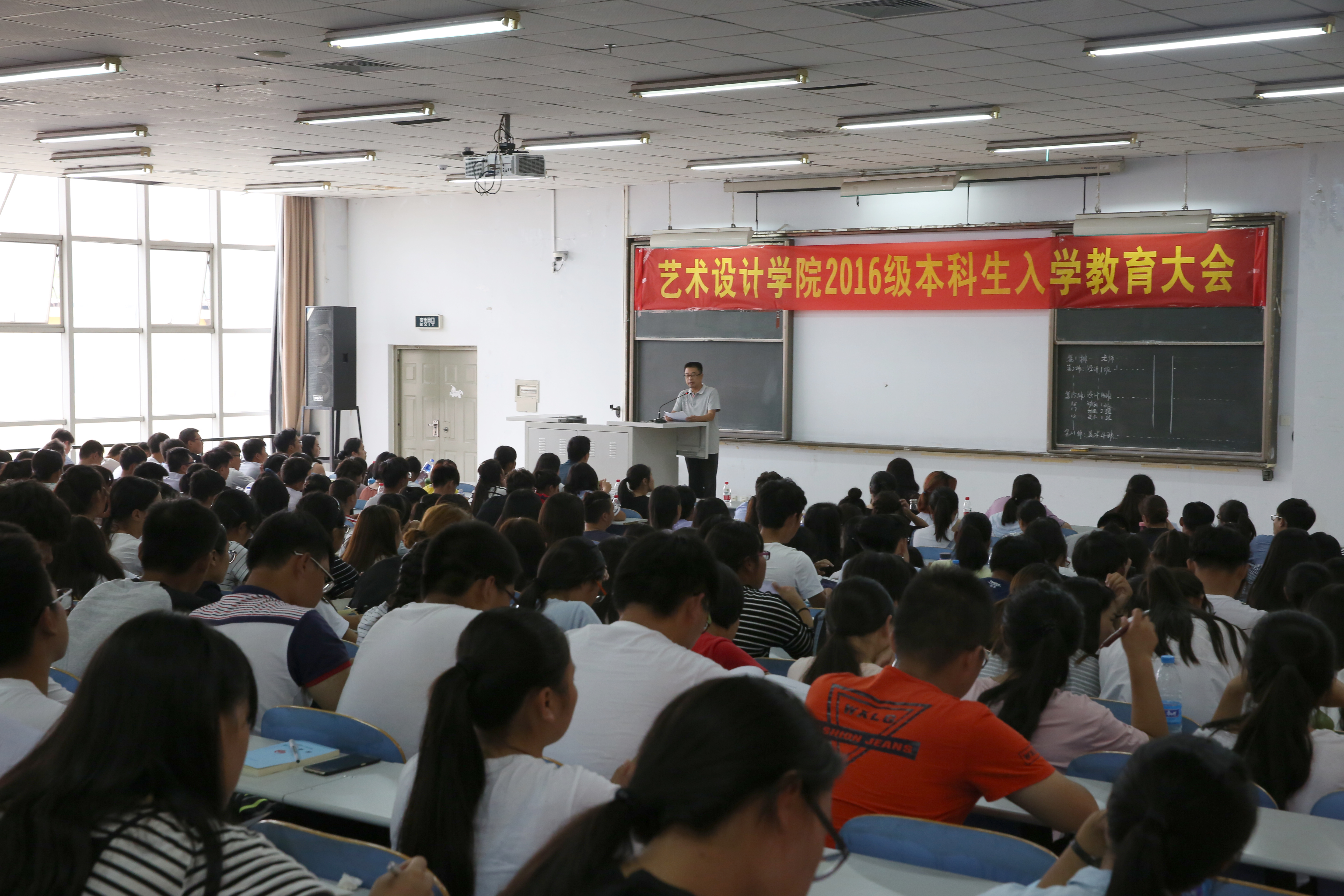 9月24日下午,艺术设计学院在教三楼302教室召开2016级本科生入学教育大会。学院党总支书记邵元珠老师、党总支副书记张莉老师、全体辅导员以及2016级全体新生参加了主题教育活动。大会由院分团委书记任红印老师主持。