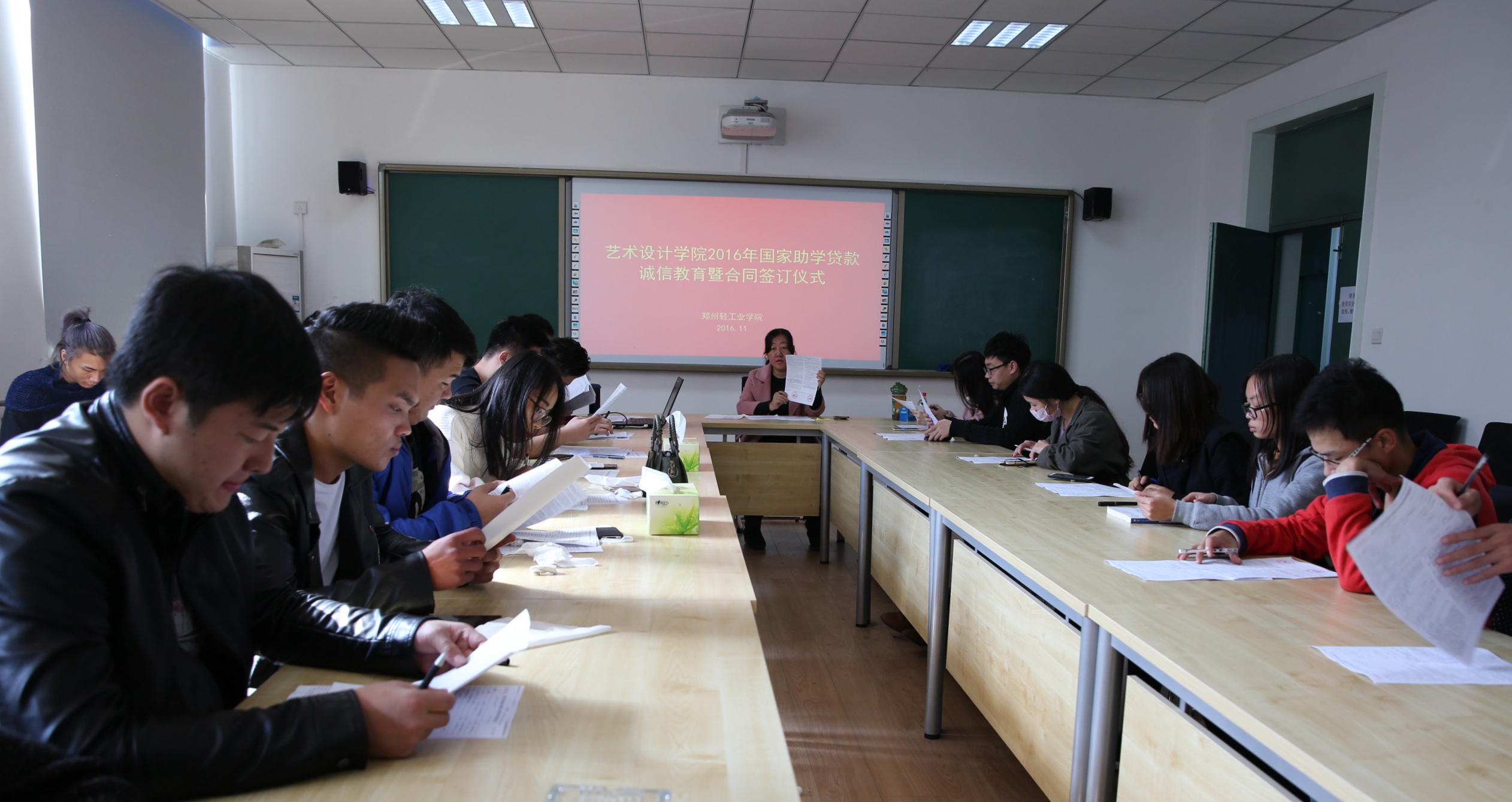 2016年11月3日,艺术设计学院在东西楼307会议室召开2016年度国家助学贷款合同签订暨诚信教育大会。学院负责贷款工作的老师及本年度贷款学生参加了会议。