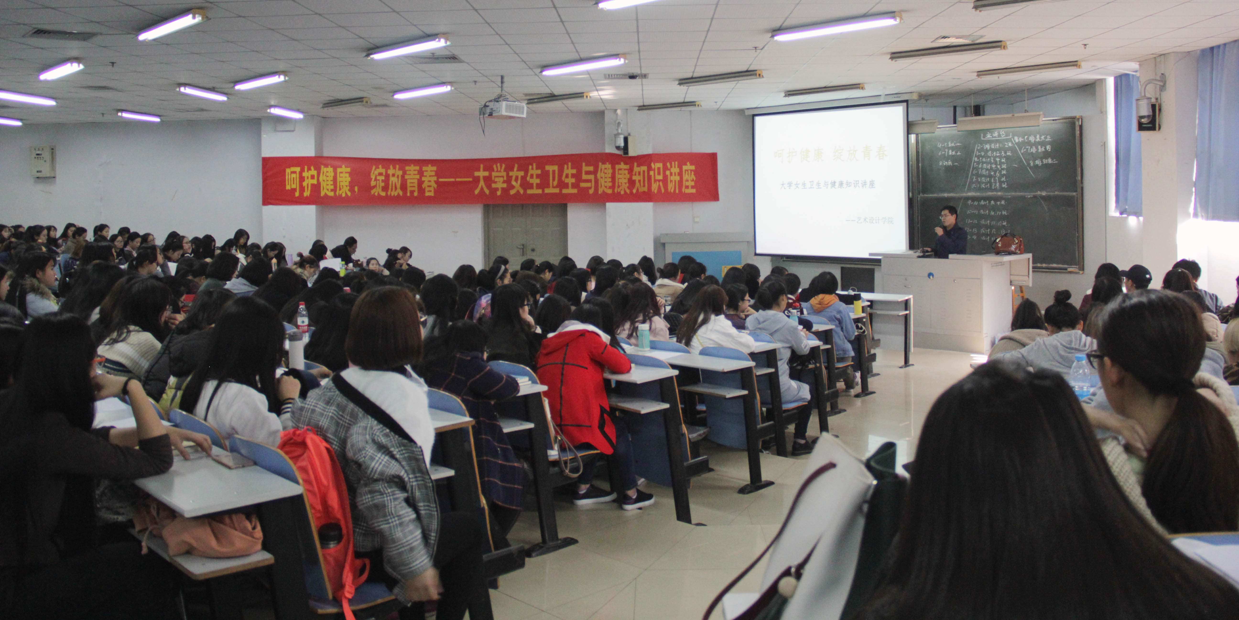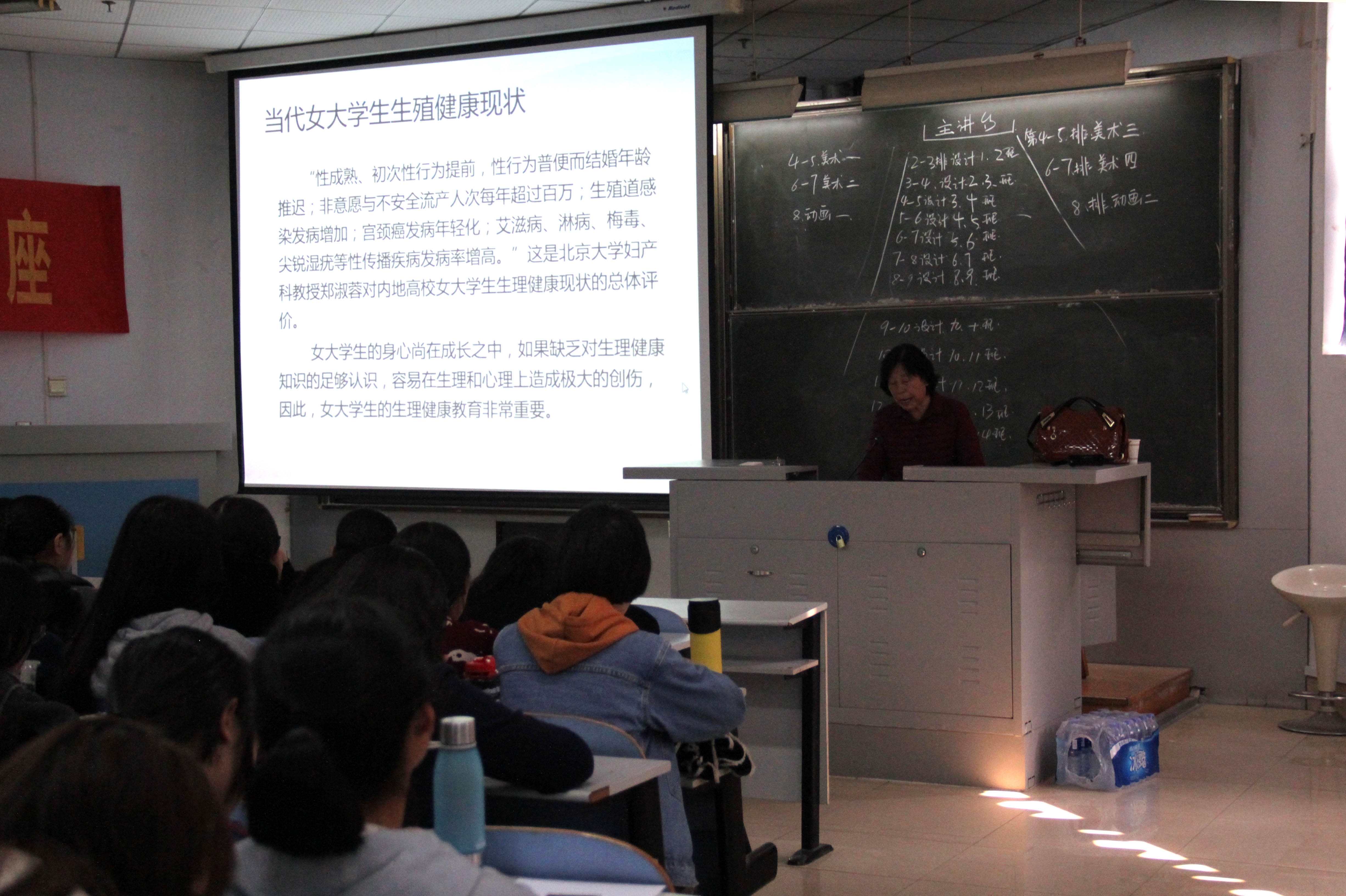 2016年11月3日下午,艺术设计学院在东风校区教三楼102举办大学生知识与生活系列活动之---大学女生卫生与健康知识讲座,邀请河南省中医药大学硕士研究生导师马春芬教授主讲,艺术设计学院2016级300多名女生聆听讲座,讲座由艺术设计学院分团委书记任红印老师主持。