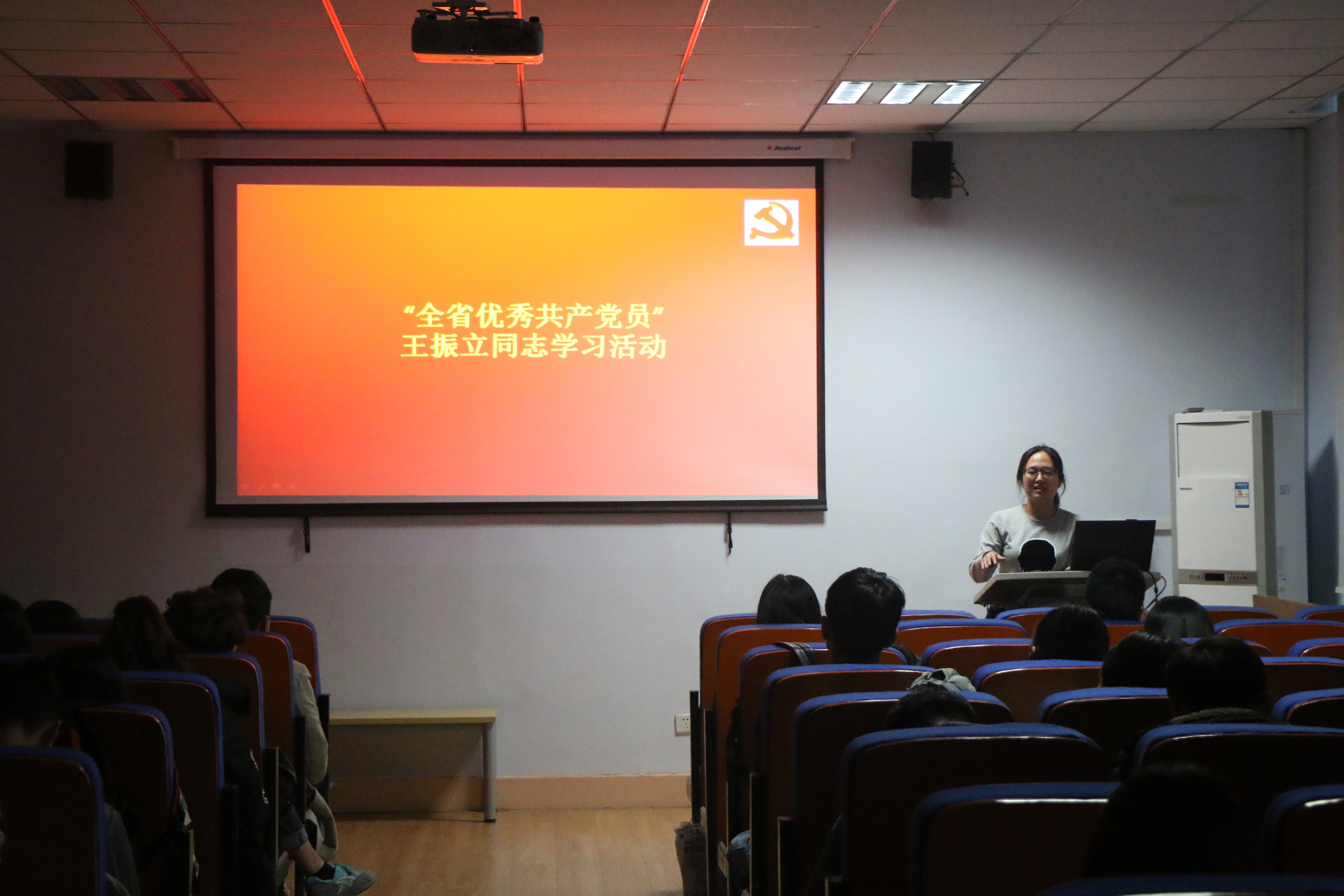 2016年11月10日下午,艺术设计学院在东四楼301开展向“全省优秀共产党员”王振立同志学习活动。本次活动由艺术设计学院学生党支部组织,第56期全体入党积极分子参与。