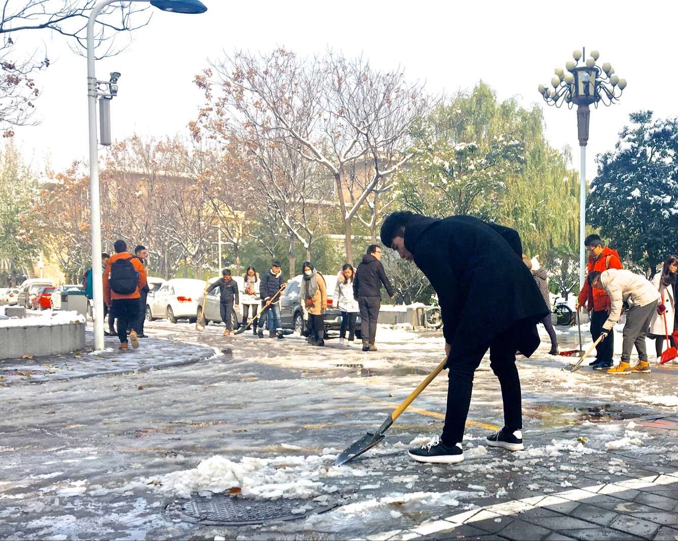 11月22日,郑州迎来了今冬的第一场雪,大雪给我们带来无限欣喜的同时,也给大家的出行带来了不便,更增添了不少安全隐患。为了保证校园交通通畅安全,方便师生出行,11月22日下午和23日上午,艺术设计学院组织学生党员和志愿者开展义务扫雪铲冰活动。