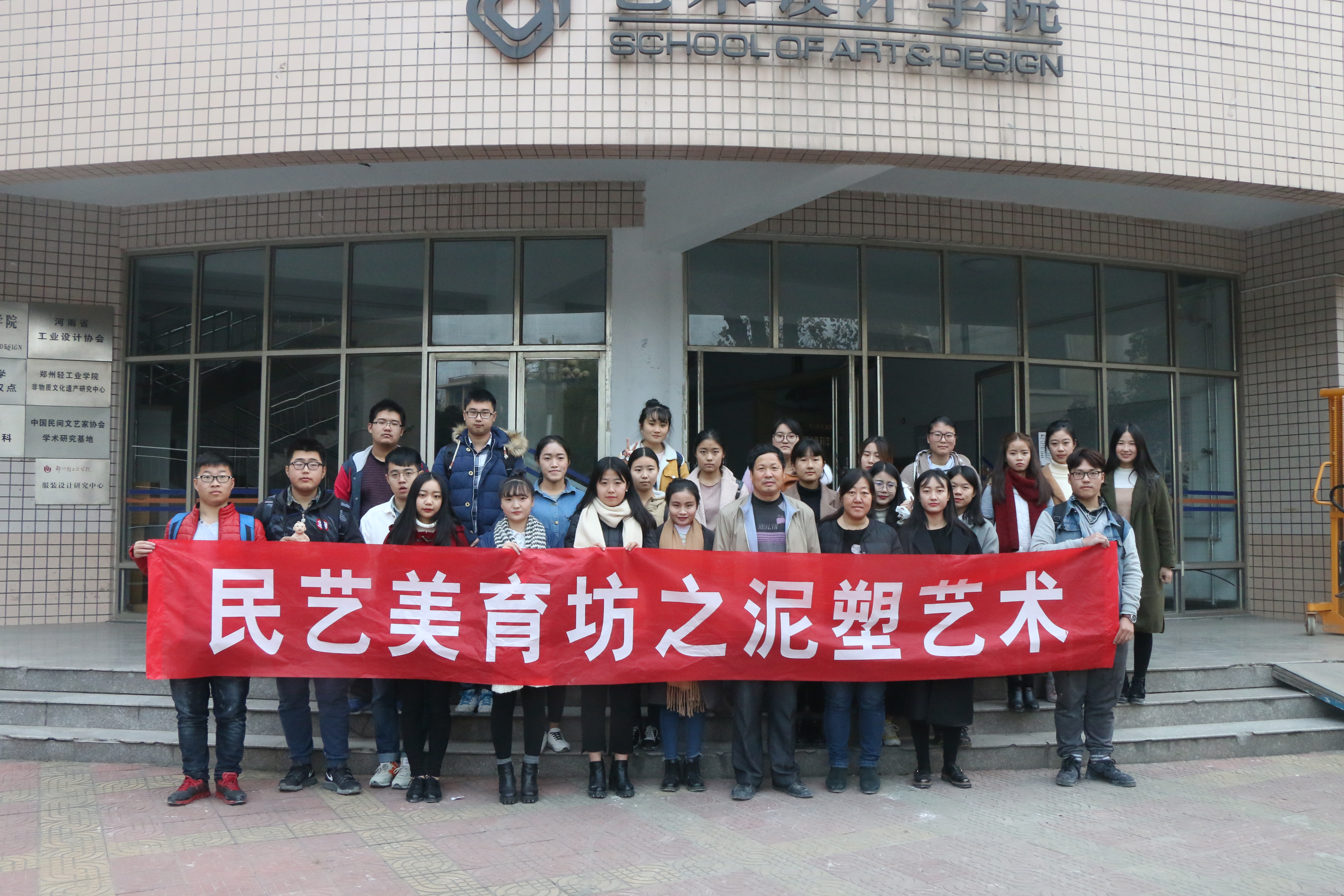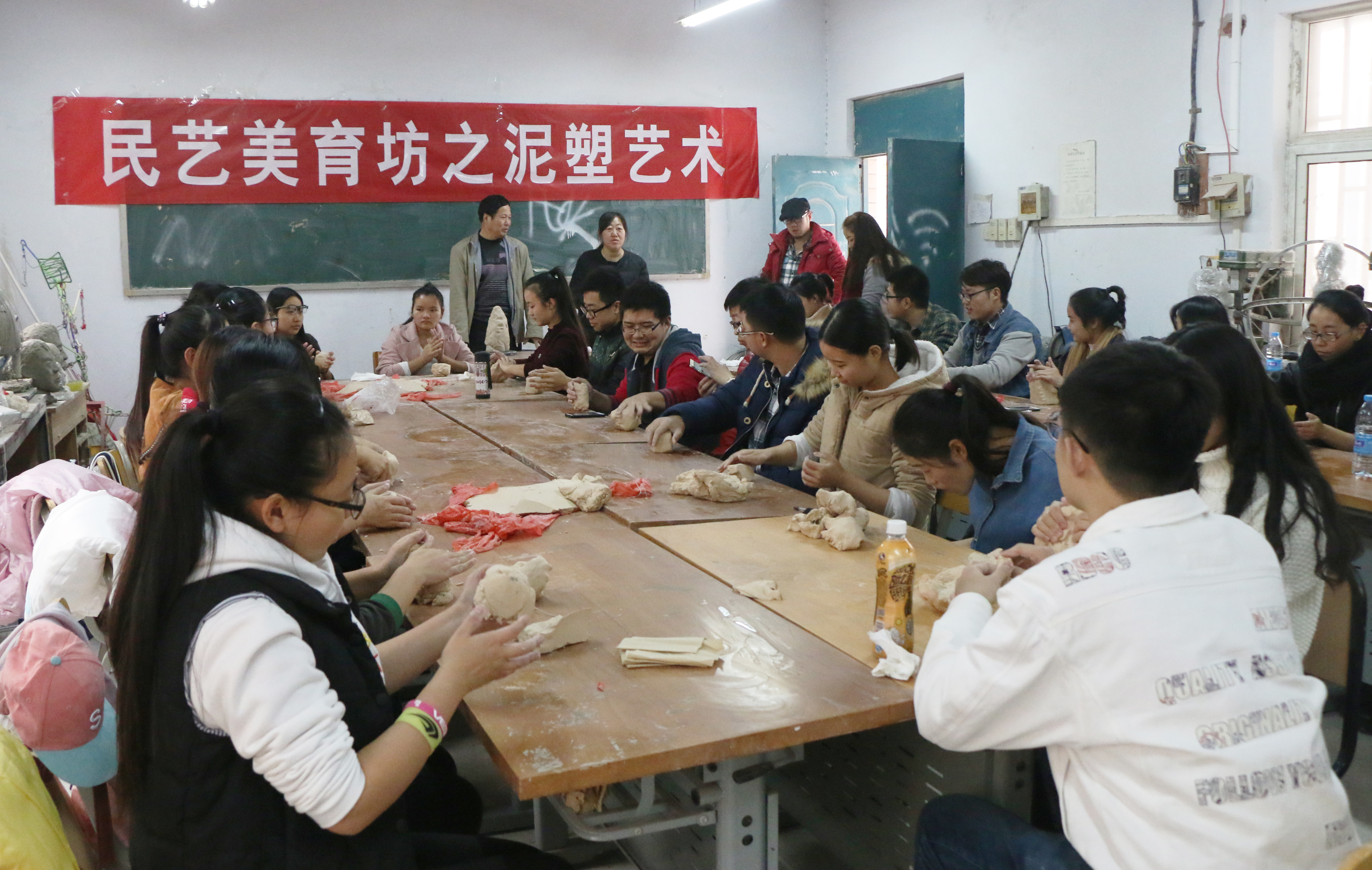 2016年12月2日下午,民艺美育坊之泥塑艺术在西五楼雕塑工作室成功进行,艺术设计学院特别邀请了河南省泥塑家王忠富老师作为本次活动的主讲。党总支副书记张莉老师,辅导员霍庆媛老师以及本硕学生共计30余人参与了活动。