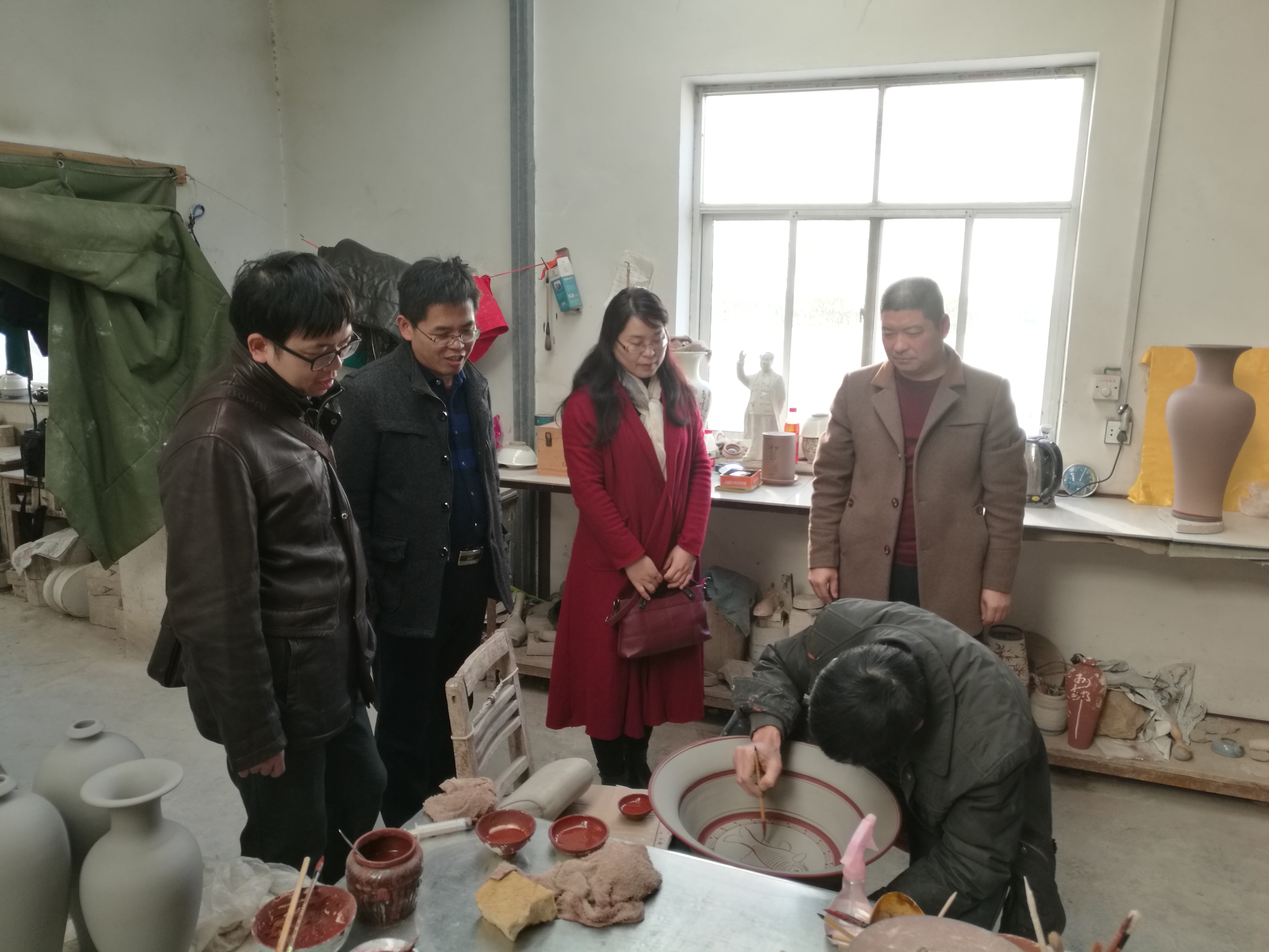 下午,四位老师又来到浅井镇扒村。扒村以民间工艺水墨瓷器而著称。四位老师对村容村貌和当地古玩市场进行了考察,并与村主要干部进行了沟通座谈。会谈亲切热烈,双方在推动陶艺专业合作、搭建学生实习实践基地等问题上进行了充分交流,达成了初步合作意向。老师们还参观了扒村瓷器博物馆和瓷器加工工厂,领略了唐宋出土文物和古法烧制瓷器的风采。
