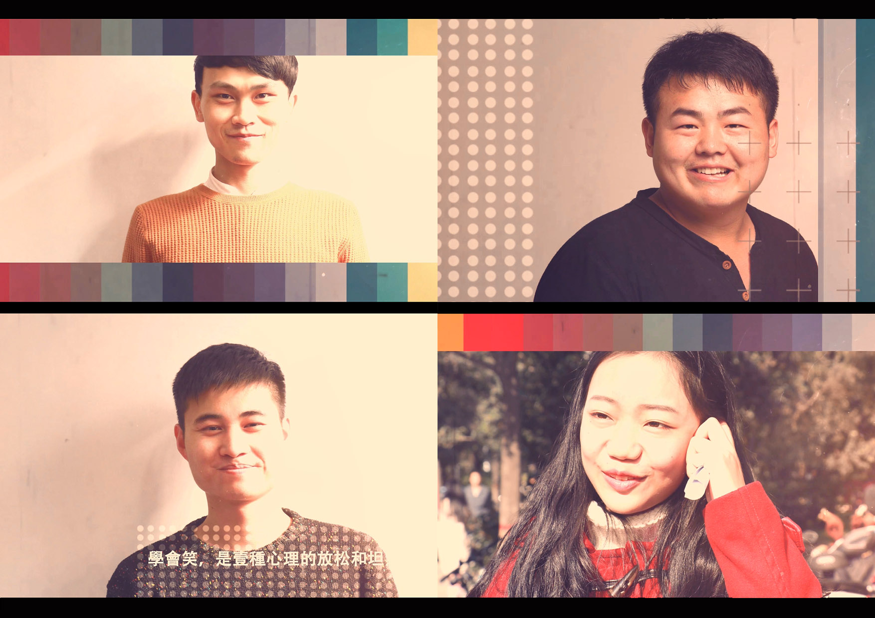 宣传短片以在校园内随机抓拍的学生笑脸为素材,以独特的视角,记录同学们最真的微笑、最美的心情,以新颖的形式诠释最美微笑的含义。“微笑是根植于美好的心灵,微笑不仅是一种表情,更是一种感情,它为家庭带来欢乐,为朋友间互通情谊,更为我们的生活带来新的希望。”参与拍摄的同学说
