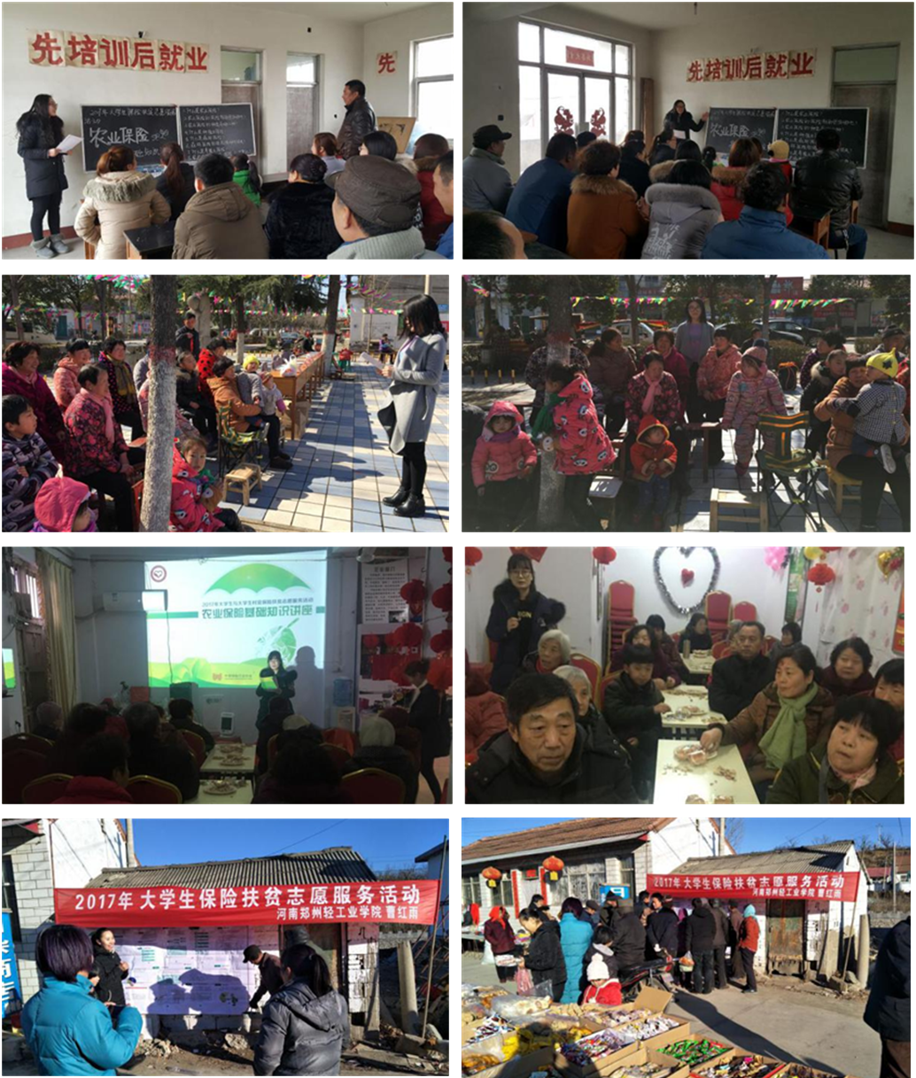 为了响应《关于开展2017年大学生与大学生村官保险扶贫志愿服务活动的通知》,发动全国高校大学生,利用寒假有利时机开展以农业保险扶贫宣传为内容的志愿服务活动。在艺术设计学院分团委书记任红印老师和辅导员唐丹丹老师的精心策划和组织下,以郭思远、田妍华、曹雪、曹红雨、谢俊迪、李小利为代表的大学生从二月初到二月中旬分别在自己的家乡开展了四场农业保险知识宣讲会,共计服务村民200余人。