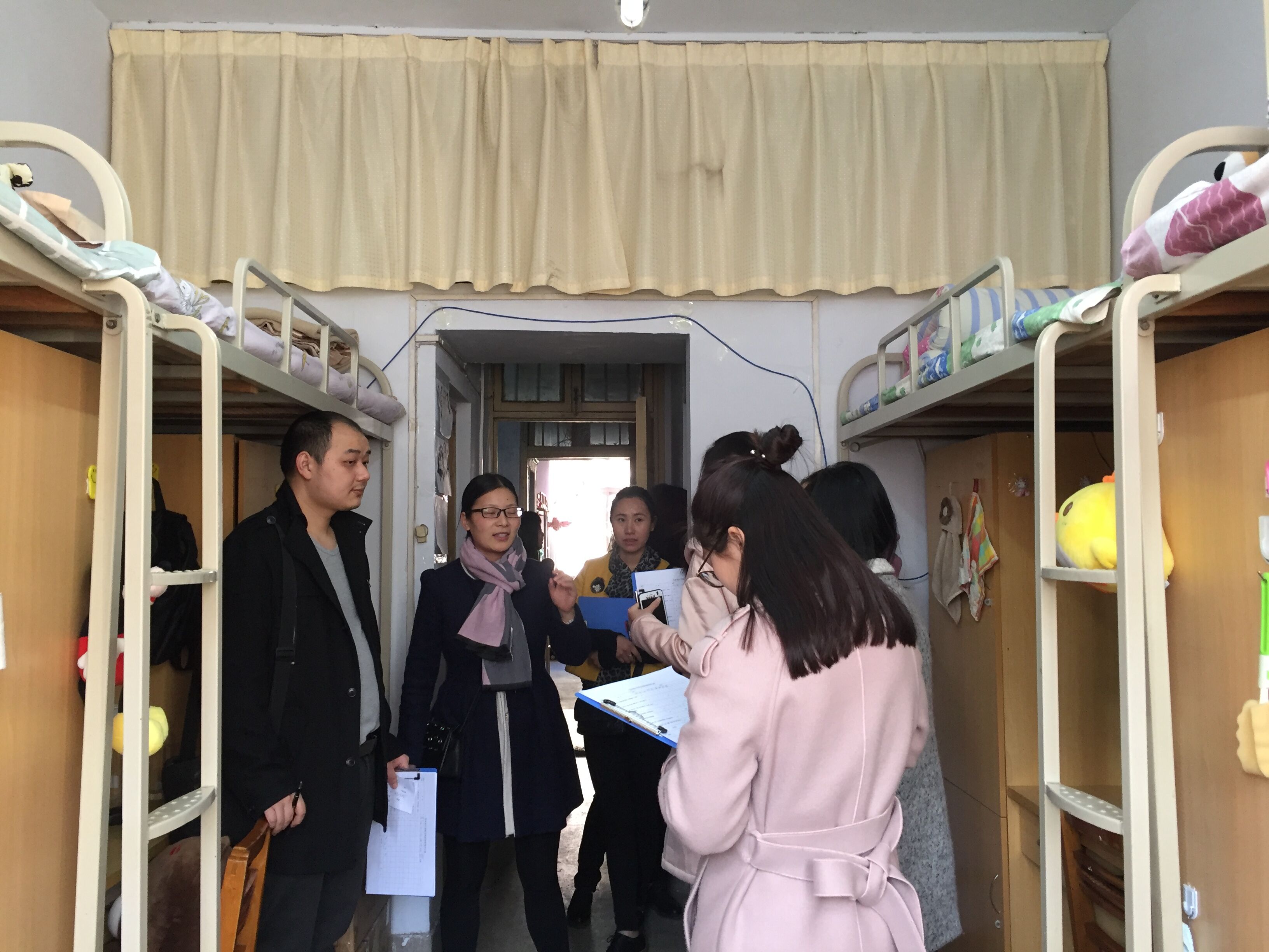 在检查过程中,老师们与学生亲切交谈,关心学生的生活环境和学习状况,提醒学生遵守学校的宿舍管理规定,杜绝私拉电线、禁止使用违禁电器等。大部分宿舍卫生干净整洁,物品摆放整齐,对个别有挂蚊帐,挂围挡和寝室内务整理欠佳的寝室也进行了批评和耐心教育。最后,叮嘱学生要提高安全意识,防患于未然,外出时将个人贵重物品存放好,平时注意锁好宿舍门窗,防止偷盗案件的发生。
