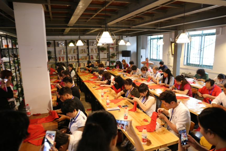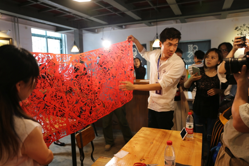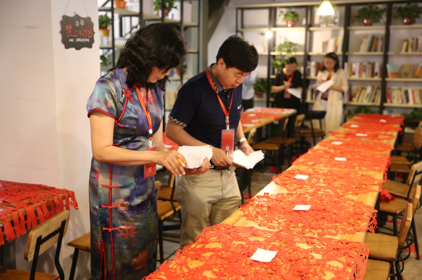 剪纸大赛现场,剪纸大师们以 “和”为主题进行命题创作,选手们经过40分钟的精彩创作后,5位剪纸评审逐一评判选手作品并给予评分。最终畅杨杨、闫巧、刘秀华三位选手荣获一等奖,袁升科、王珊珊、王飞、杨智晓、孔文娟五位选手荣获二等奖,田淑霞、崔秀丽、尹高峰等十位选手荣获三等奖。