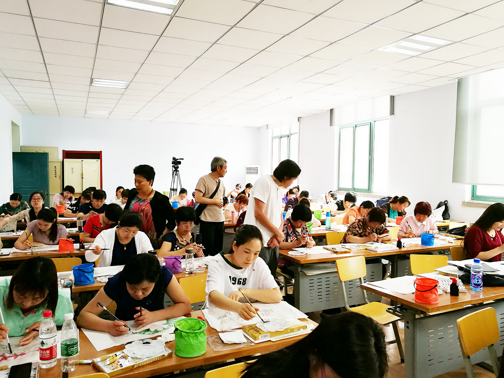 最后,王潇博士陪同李院长一行观摩了正在参加研培计划刺绣班学员的课堂教学,参观了正在举办的2016年度五期研培计划培训学员的优秀作品展。