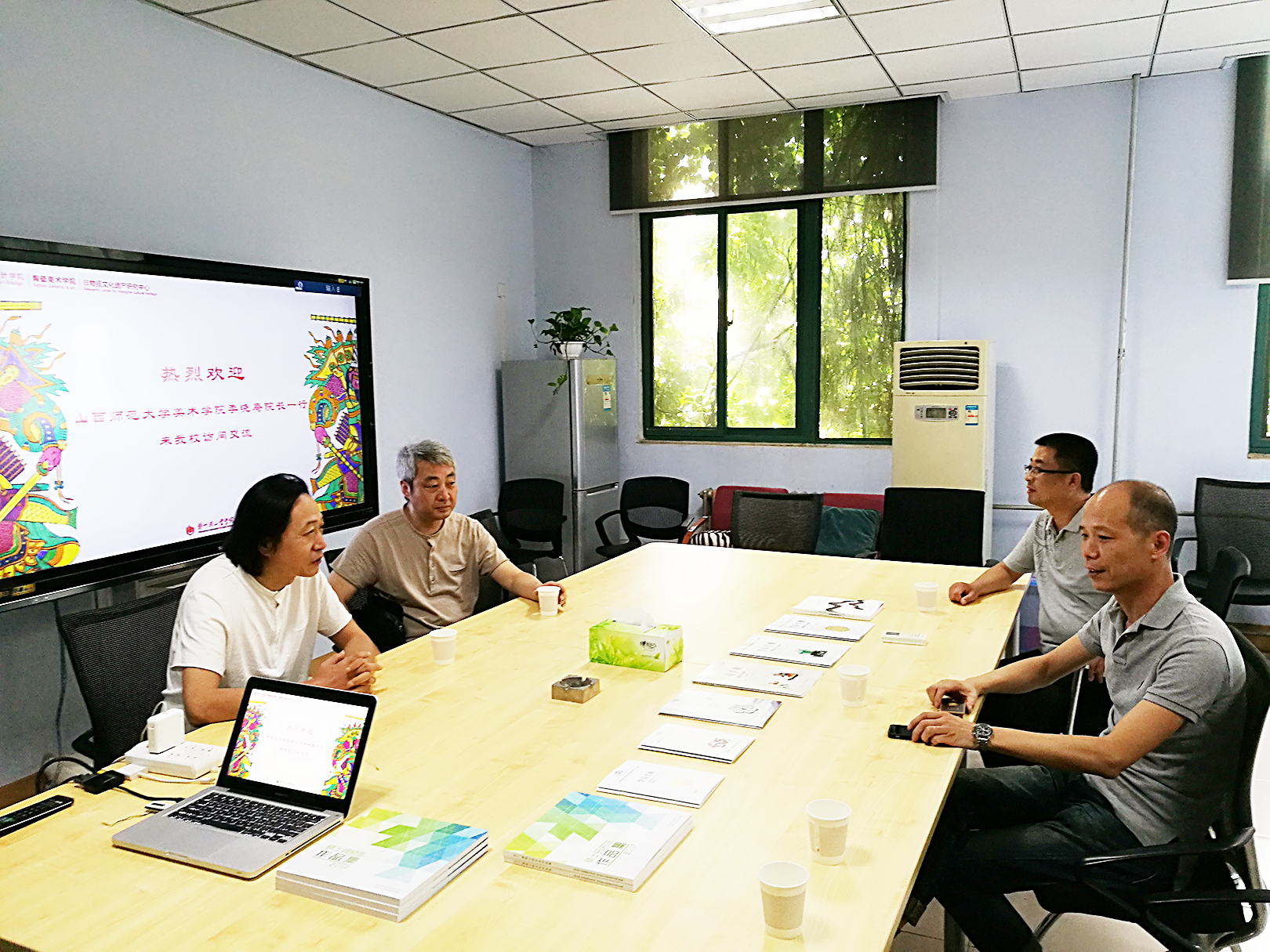2017年6月14日上午9点,山西师范大学美术学院李晓庵院长、张一平副院长一行来我校艺术设计学院访问,交流非遗研培计划申报及研培工作开展情况。艺术设计学院曹阳院长、邵元珠书记、王潇博士参加了此次交流活动。