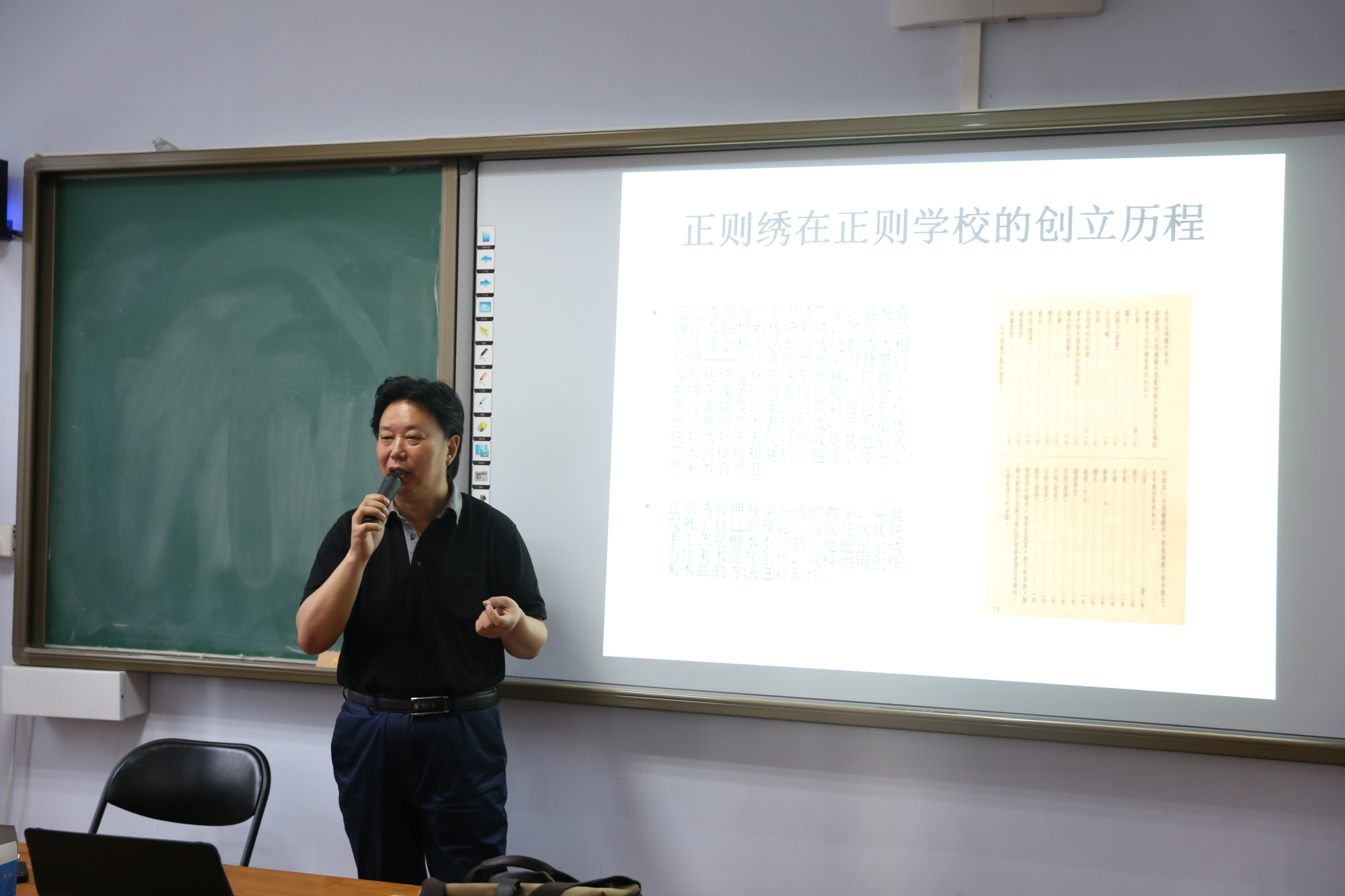 2017年6月17日上午,中国工艺美术大师,“正则绣”第三代传人吕存先生应邀在郑州轻工业学院东风校区东四楼207教室,为正在我院参加“文化部、教育部,中国非物质文化遗产研修研习培训计划”第六期刺绣班学员举办《乱针秀—美育实践的产物》专题讲座。讲座由艺术设计学院王潇博士主持。