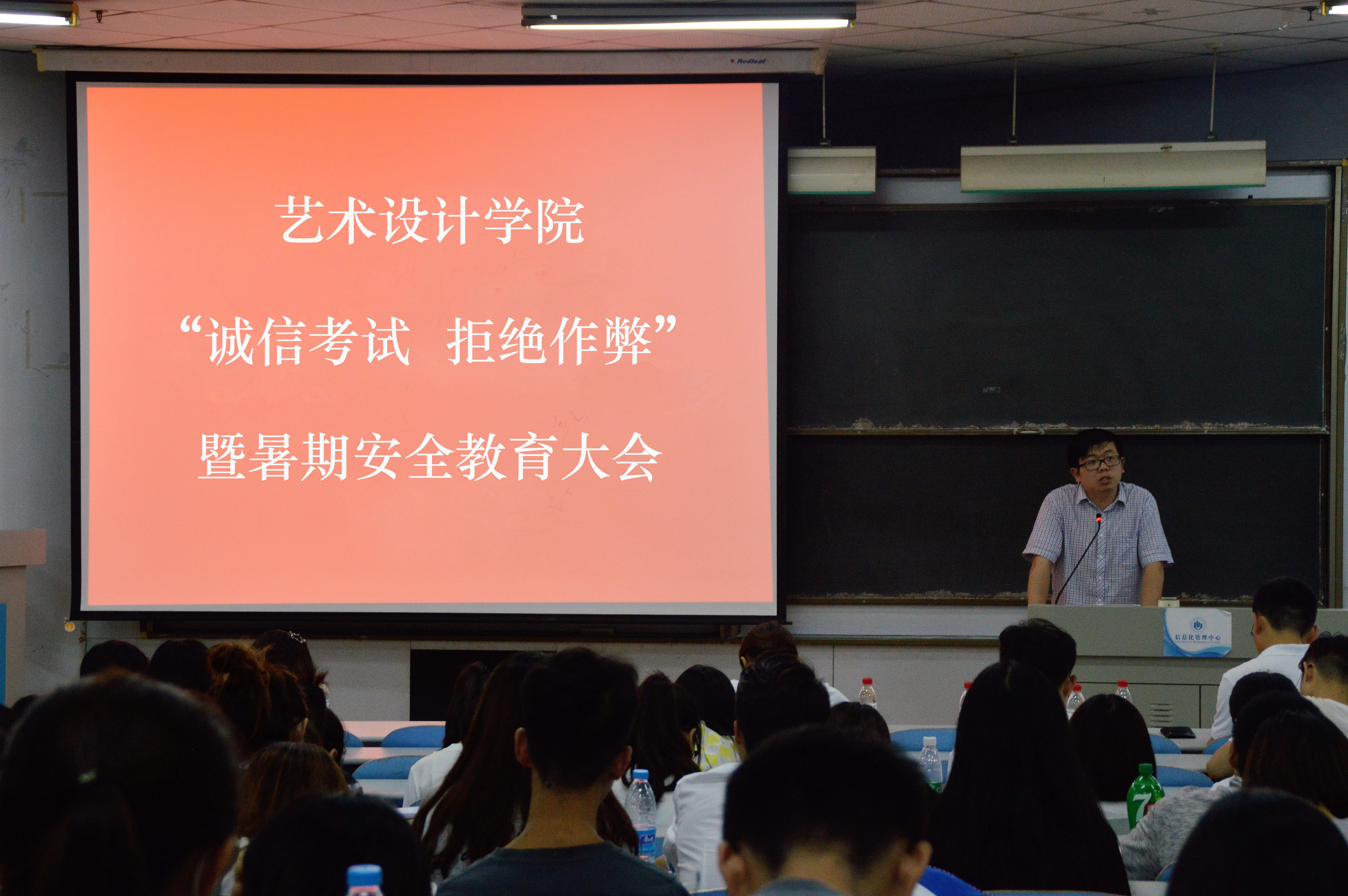 2017年6月27日下午,艺术设计学院在教三楼102举行“诚信考试 拒绝作弊”暨暑期安全教育大会。学院分团委书记任红印老师、学工办副主任孙丰老师、本科一二三年级以及研究生全体学生干部共计300余人参加了大会。