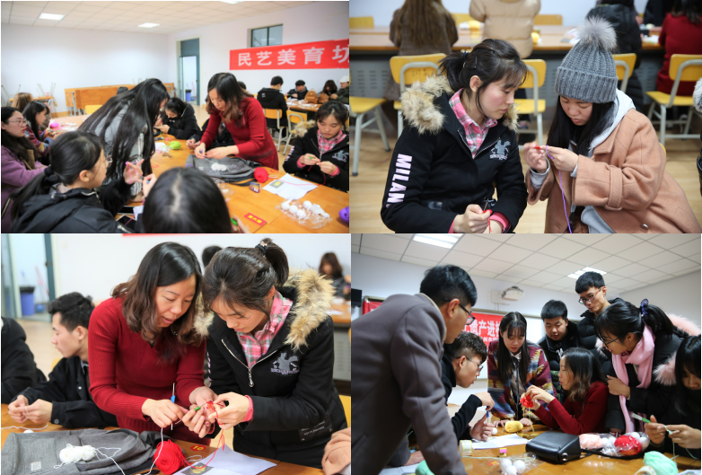 2017年12月15日下午,艺术设计学院在东四楼201教室举办民艺美育坊之编织艺术。本次活动特别邀请了非遗传承人余水云老师作为主讲嘉宾,学院党总支副书记张莉老师、专职辅导员唐丹丹老师、郭星老师和部分教师代表以及本硕学生共计四十余人参与了活动。