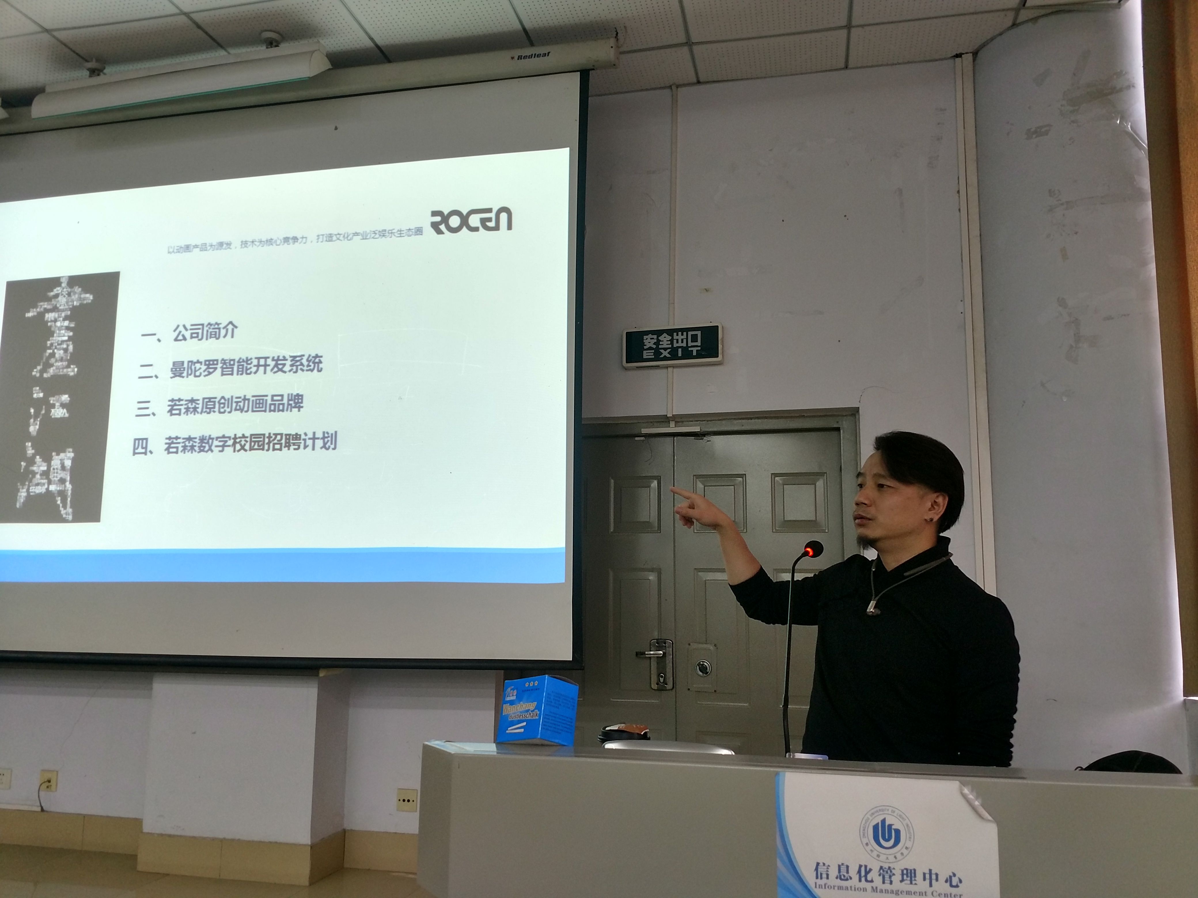 2017年12月26日下午,艺术设计学院动画系邀请了北京若森数字科技有限公司副总经理、动画“画江湖”系列监制庞大龙老师进行了主题为“泛娱乐媒介环境下的网络动画现状与趋势”的讲座,动画系系主任潘明歌、任课老师汤梦箫、王建浩以及动画系15、16、17级的全体同学参与了活动。