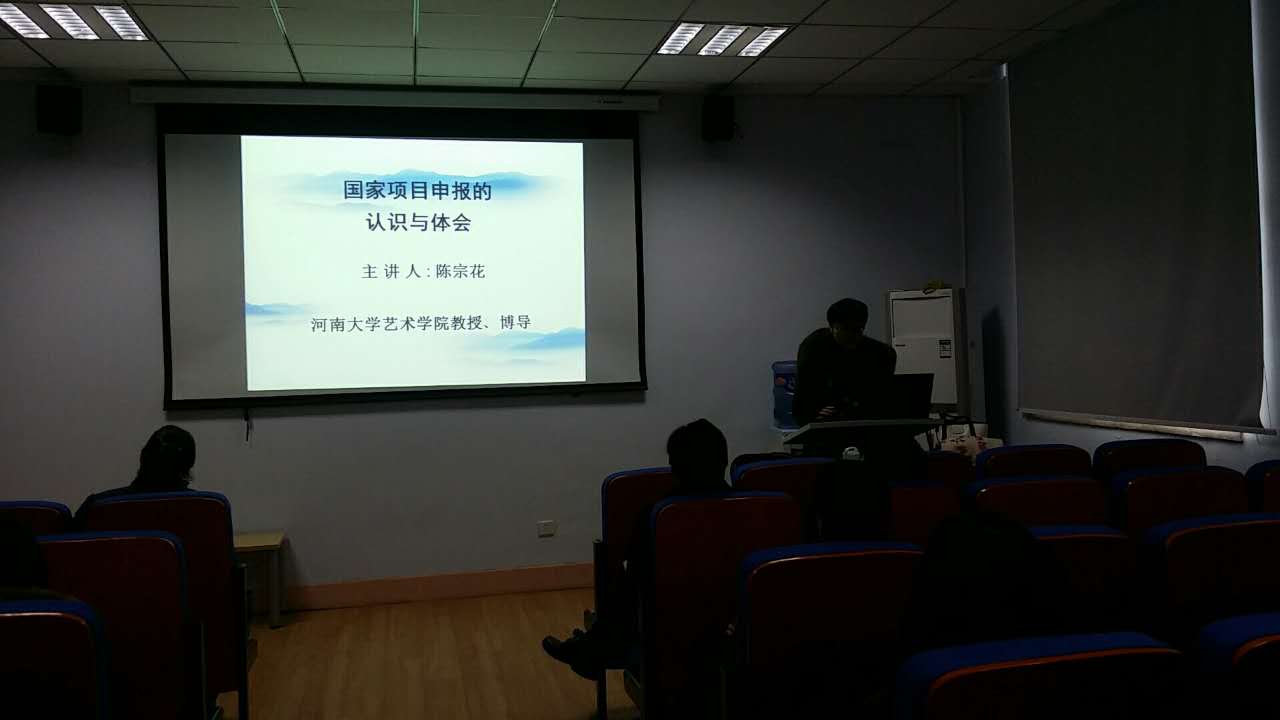 12月26日上午,河南大学教授,中国音乐史方向博士生导师陈宗花来我校为师生做题为《对申报国家社科项目的认识与体会》的精彩讲座。艺术设计学院全体博士、各系教师及部分研究生参加了这次讲座,讲座由艺术设计学院副院长魏华主持。