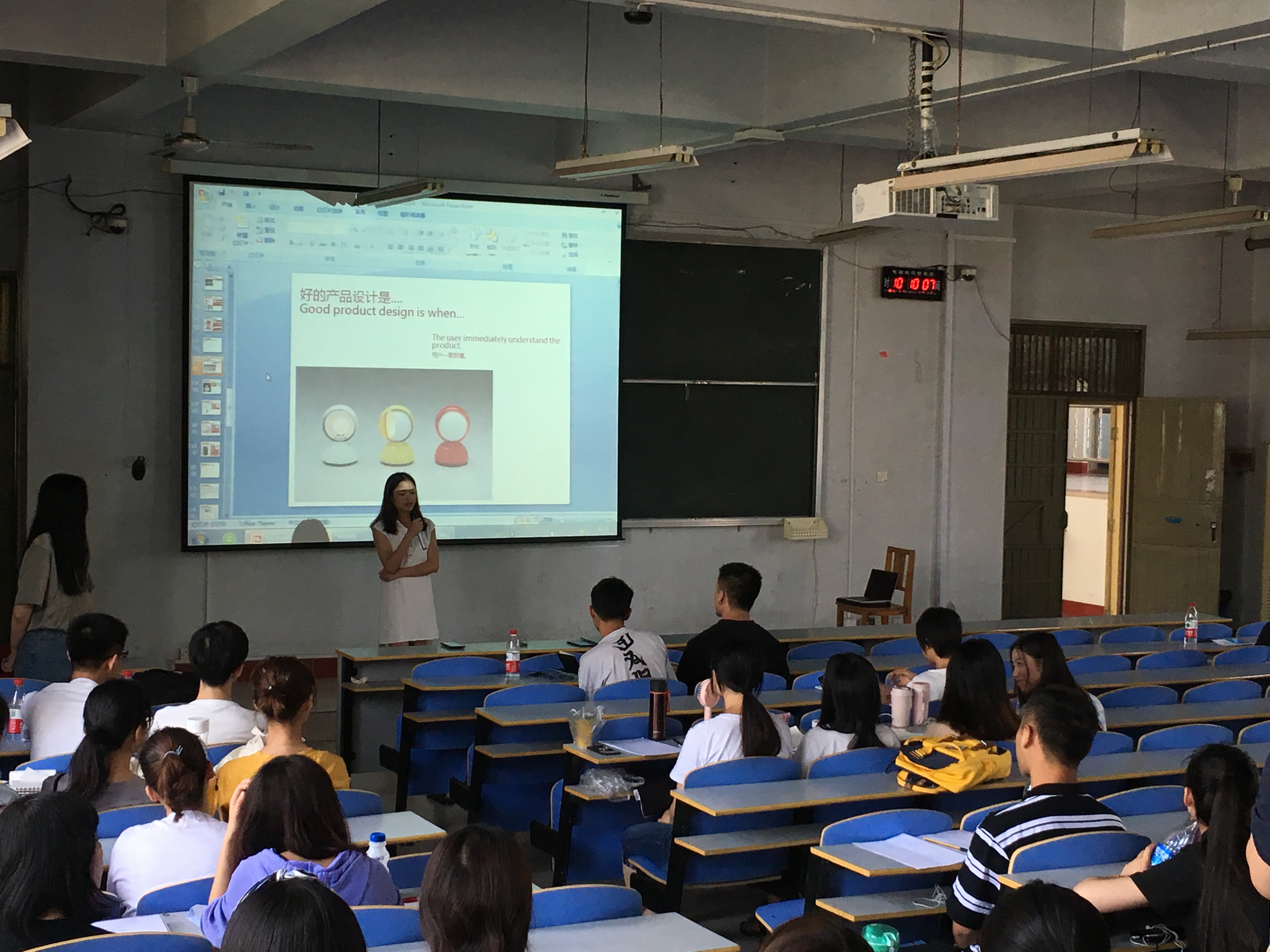 在最后,潘金平设计师作为我院的代表毕业生分享了自己工作两年以来的经历,从最初的如何适应企业节奏、发挥学校中学习到的设计方法以及自身成功的设计案例。使在场学生受益匪浅。报告在师生们热烈的掌声中结束。