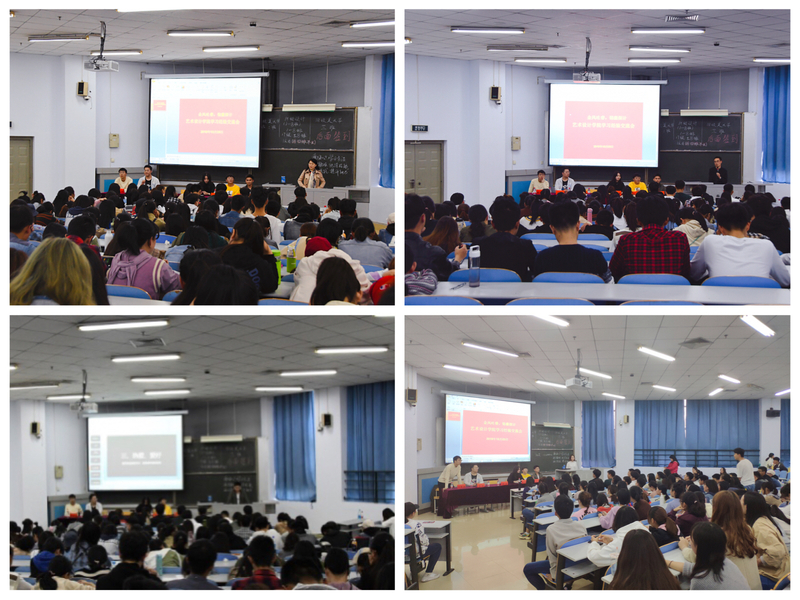 10月25日下午,艺术设计学院在东风校区教三楼202室举行了“金风吐睿,锦囊探计”学习经验交流会,学院党总支副书记张莉老师、院长助理卢建洲老师、2018级辅导员郭星老师、胡茜茜老师以及2017、2018级学生代表近200人参加此次活动。