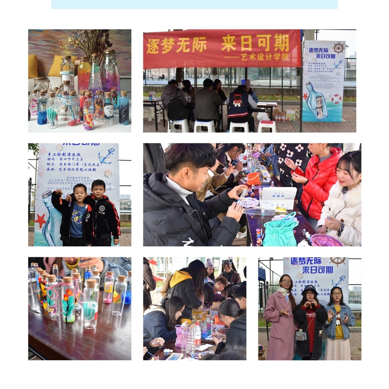 本次活动主要面向学校全体师生,通过手工制作的方式,将美好的心愿和愿望写入漂流瓶中,制作成心愿瓶,为同学们提供一种表达情感和释放情绪的新途径。其流程是在心理部成员的引导下,每一位参与者可以根据自己的爱好选择漂流瓶,利用画笔在瓶身绘制各样图案,随后在一张纸上写下自己的愿望放入到漂流瓶中,以此来珍藏自己的小心愿,还有的同学在漂流瓶中装上了荧光砂,以此来祈祷自己的愿望成真,逐梦无际,来日可期,不忘初心,展望未来。在创作过程中同学们表现出强大的奇思妙想和创新,现场的气氛十分活跃,效果很好。