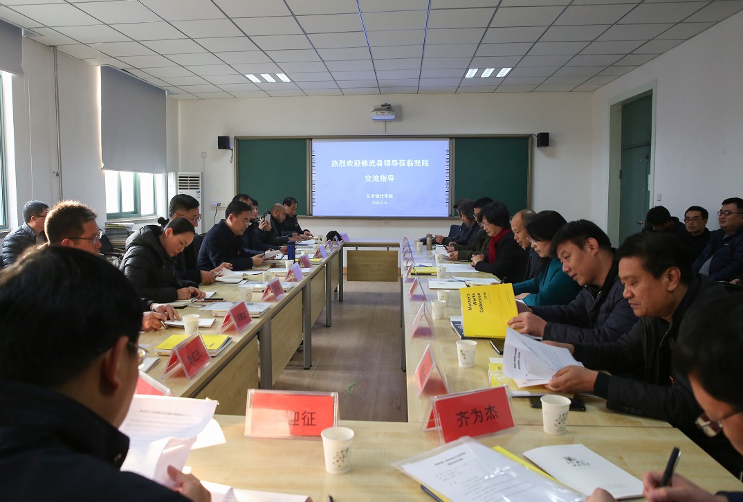 12月14日下午,焦作市委常委、修武县委书记郭鹏一行来我校艺术设计学院考察交流。副校长王新杰、艺术设计学院党政领导及教师代表参加了交流会。交流会由曹阳院长主持。