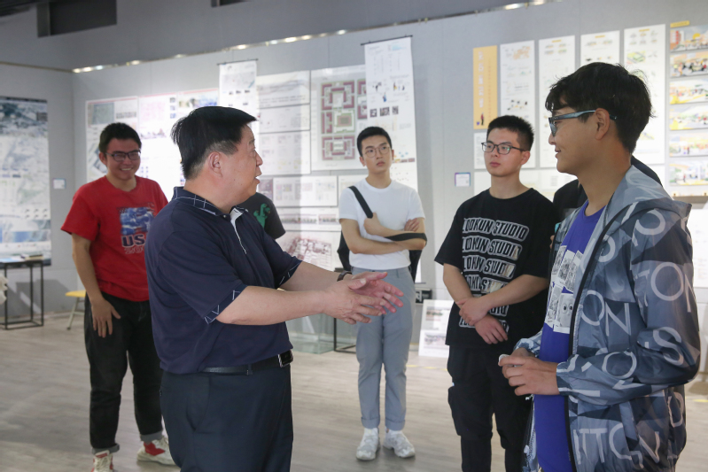 观展过程中,赵校长先后观看了视觉传达设计、环境设计专业毕业设计作品,听取了现场师生的作品介绍,并就设计理念、创作过程、应用开发等问题与参展毕业生进行了亲切交流。赵校长对学生丰富的想象力和创造力给予了充分肯定,对作品所展现出来的艺术水准给予了高度评价,并勉励同学们不断学习国内外先进设计思想和方法,为创新生活方式,提升艺术品位,服务社会发展做出积极贡献。赵校长在观展时强调,学科建设是学校事业发展的生命线,是推进内涵式发展的必然要求,艺术设计学院要抢抓机遇、乘势而上,不断提升艺术设计学科发展优势,持续扩大在艺术设计领域的学科影响力和社会知名度;要描准社会需求,着力加强专业建设,持续强化学生专业素养,全面提高人才培养质量,着力打造具有我校特色的设计类人才培养品牌。