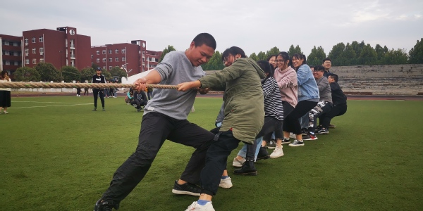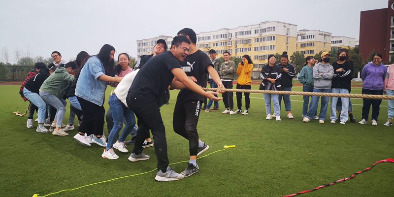 绿茵场上,同学们个个斗志昂扬,充满了青春热情。哨声还未吹响,对阵双方的选手就已经压低重心、握紧了手中的麻绳。哨声一响,选手们立刻咬紧牙关、向后倾倒、全力拼搏。比赛过程中,大家心往一处想,劲往一处使,随着口号一下一下地用力,动作整齐划一。分出胜负后,取胜的队伍欢呼雀跃甚至拥抱在一起;失败的队伍也不气馁,队员之间相互鼓励、相互安慰。大家虽然手疼脚麻,但是心情十分愉悦。