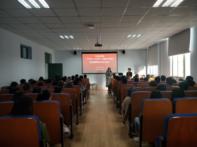 为深入学习贯彻习近平新时代中国特色社会主义思想,按照校党委“不忘初心、牢记使命”主题教育统一安排,10月24日下午,艺术设计学院在东四楼301会议室开展“不忘初心、牢记使命”主题教育专题报告会。报告会由校党委讲师团成员马克思主义学院张雪琴副教授主讲,活动由党总支副书记张莉主持,学院中心组成员、教工党员及学生党员代表100余人参加了报告会。
