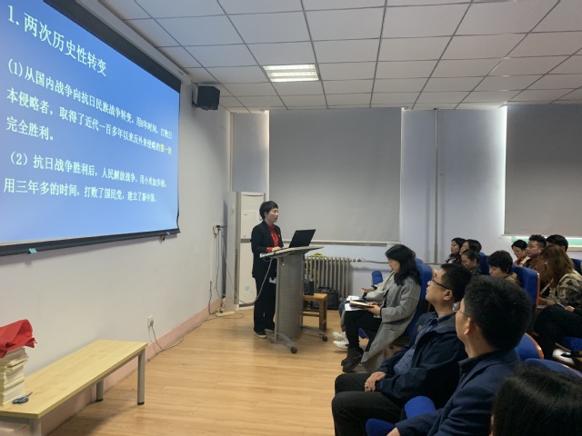 张雪琴副教授以《延安精神及其当代启示》为题,从中国共产党的延安岁月、中国共产党的延安成就、延安精神的主要内容及新时代学习延安精神的意义四个方面认真梳理了中国共产党在延安十三年艰辛而辉煌的历史,详细介绍了延安精神的产生、发展和巨大影响,并结合白求恩、张思德等先进典范,向师生深刻阐述了“延安精神”的内涵:坚定正确的政治方向,实事求是的思想路线,为人民服务的根本宗旨,艰苦奋斗的精神。