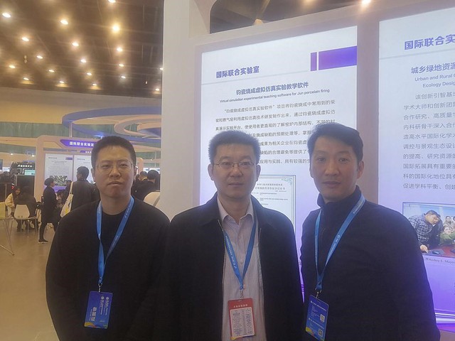 我校“河南省设计呈现虚拟仿真国际联合实验室”受邀参加该技术转移大会,我院国际联合实验室办公室主任张搴副教授和实训中心主任彭鹏老师携艺术设计学院曹阳院长主持研发的《钧瓷烧成虚拟仿真实验教学软件》项目参展。