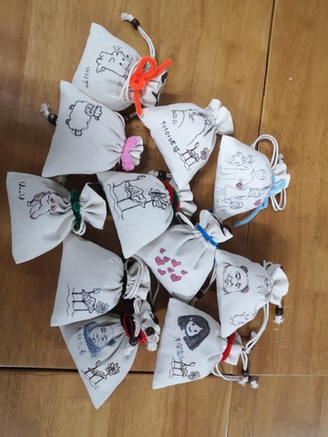 本次活动包括珍藏心愿和手绘图案两个环节。经过材料准备、场地选择之后,活动正式开始。一个个可爱又灵巧的福袋,激起了同学们踊跃尝试大展身手的热情,大家积极参与,认真投入,用心写下自己的小小心愿,将个人的内心想法和美好祝愿、对美好生活的祝福注入福袋之中。最后同学们在福袋上随心作画,绘制出一幅幅精美的图案,原本可爱的一个个福袋更具有了吸引力。