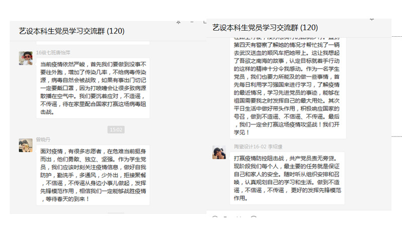 当前,面对新冠肺炎疫情仍不能掉以轻心,艺术设计学院学生党支部全体党员将继续坚决贯彻落实党中央、省委和学校各项决策部署,践行初心使命,科学做好疫情防控各项工作,为打赢疫情防控阻击战贡献力量。
