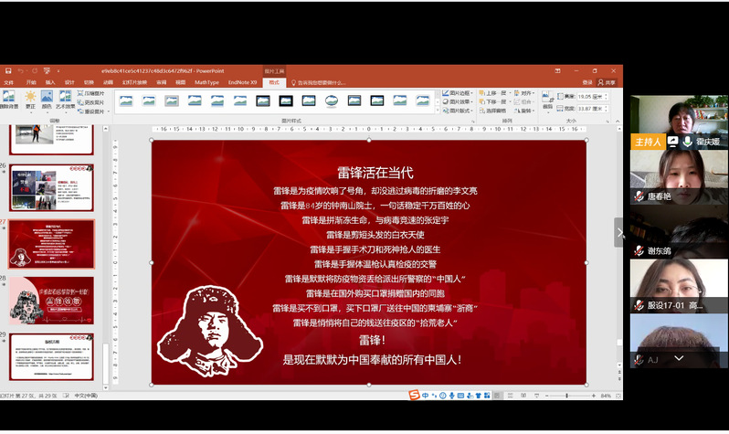 为充分发挥基层党组织战斗堡垒作用和党员先锋模范作用,进一步弘扬雷锋精神,3月7日,艺术设计学院学生党支部通过腾讯会议开展“战疫情、学先进”主题党日活动。