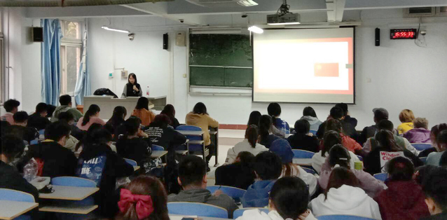 随后,学院辅导员胡新月老师向在场同学做了关于基础团务知识的主题讲座,重点围绕共青团的基层设置、团员权利和义务、三会两制一课制度,以及团员发展流程等问题进行了详细讲述。