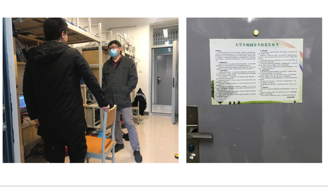 各年级辅导员在宿舍安全卫生排查过程中,针对宿舍的用电安全和卫生状况作出全方位检查,并对每个宿舍发放了《大学生校园安全防范告知书》供其学习。经排查,我院学生宿舍整体情况较好,未发现存放或使用违章电器的情况。老师们在检查过程中对个别不合理的情况逐一进行了具体指导并提出解决措施,学生会生活部在排查过程中将出现的问题进行拍照记录,在学院范围内对优秀宿舍进行通报表扬,对安全卫生不合格的宿舍进行教育与通报批评,并责令其限期整改。