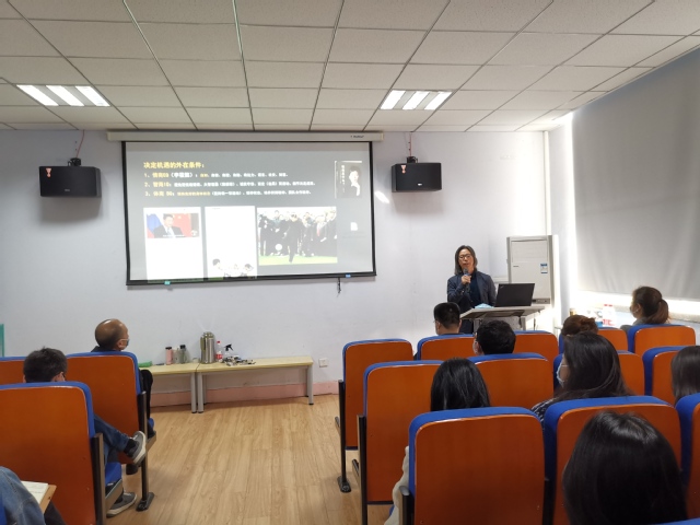 冯老师以“廉政文化主题展陈项目的实践与启示”为主题,生动的讲述了廉政文化项目对于其个人发展的重要意义,深入分析了党的十九大以来,廉政文化发展所面临的时代契机,鼓励各位老师准确理解和把握党的十九大在全面从严治党方面作出的重大决策部署的基础上,要与时俱进、志存高远、坚定信念、与党同心,为国家党风廉政建设做出应有的贡献。随后,冯老师针对其从事的廉政文化主题展陈项目中的河南廉政文化教育馆布展和河南党性修养教育基地布展两个项目进行了详细的讲解,通过图片、文字、全息投影和雕塑等多种艺术表现方式,直观生动的展示了中国廉政文化的历史进程和焦裕禄精神、红旗渠精神、愚公移山精神等党各个时期先进事迹和典型案例,诠释了一名共产党员应有的修养。