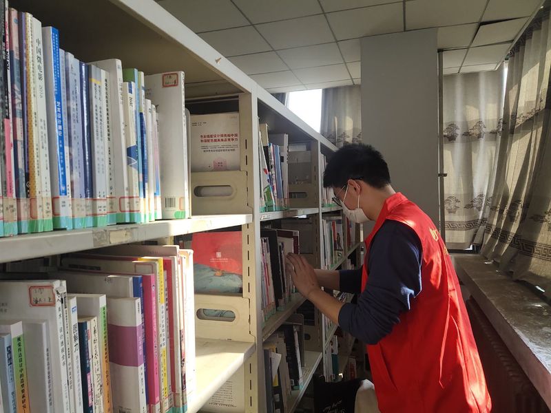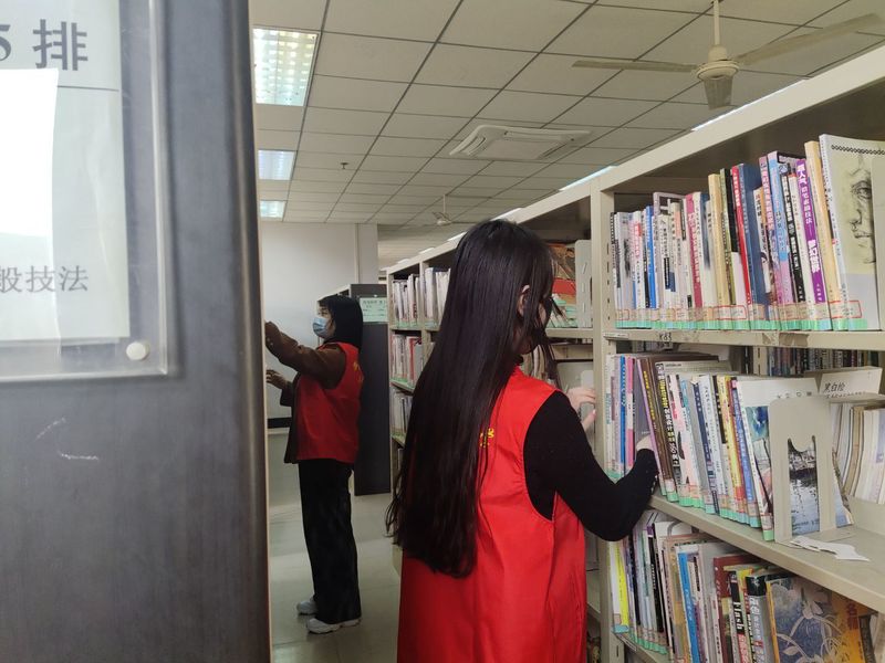 活动中,在主管老师的指导下,志愿者们对照图书分类办法,将借阅归还的图书重新上架,为了防止自己影响正在自习和阅读的同学,大家分外小心,努力保持图书馆良好的阅读环境。通过同学们一下午的努力,近千本图书回归原位。