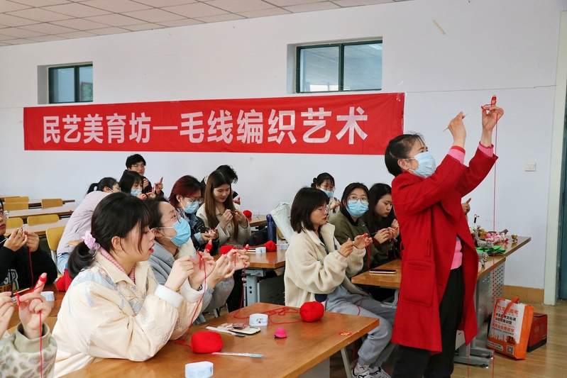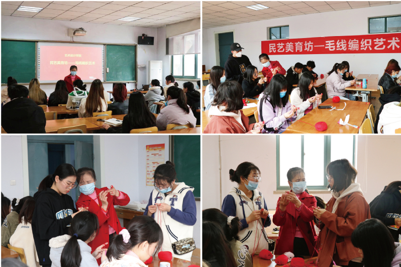 3月11日,艺术设计学院邀请河南省民间文艺家协会会员刘景兰,在东四楼201开展新一期民艺美育坊活动,本次活动以毛线编织艺术为主题,部分教师及本硕30余名同学积极参与。