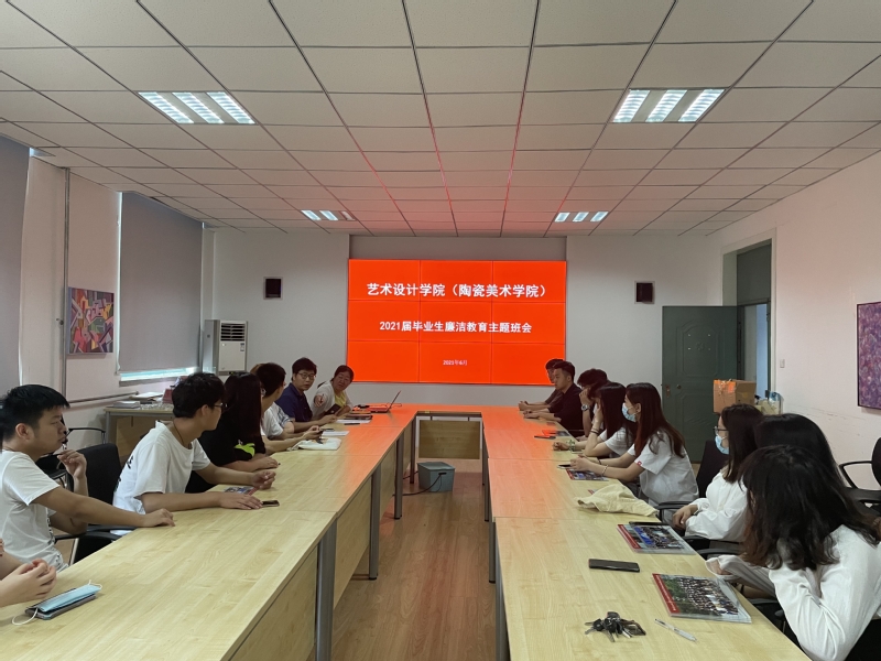 6月23日上午,艺术设计学院在东风校区东四楼307举行2021届毕业生廉洁教育主题班会,学院党委副书记贾红雨、学工办主任霍庆媛、毕业班辅导员陈梦涵及2021届毕业生代表参加了此次会议。