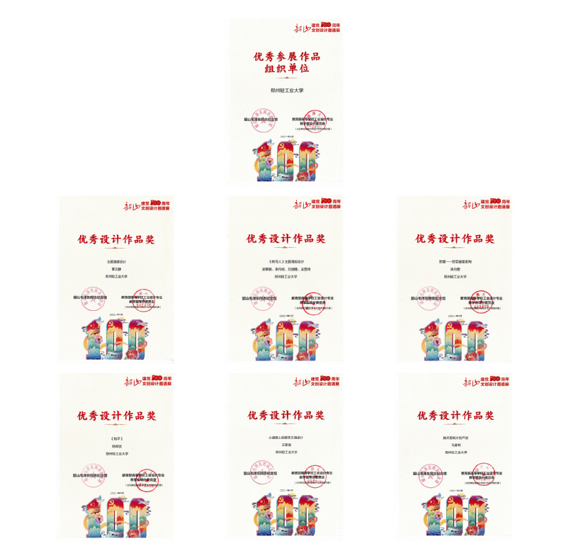 该展览征集了来自教育部高等学校工业设计专业教学指导分委员会、全国工业设计一流专业建设协同创新平台、中国特色文化产业联盟、全国各高校等近50个单位提交的400余件红色文创作品。经过评审,最终评选出20个优秀参展作品组织单位、100个优秀设计作品奖、1个优秀设计作品特别奖。我院学生宋丹雯的设计作品《野渡》、安秉毅等同学的设计作品《吹号人》、陈知忧的设计作品《和平》、王歌语的设计作品《小康路上的微笑文创设计》、马春利的设计作品《航天剪纸文创产品》、覃文静的《主题海报设计》荣获“优秀设计作品奖”,这些作品将思想性、艺术性、创造性融为一体,在深入发掘社会主义核心价值观的同时提升了对红色文化产品的感受力和审美力。