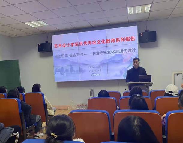 2021年12月16日下午,艺术设计学院在东四楼301举办了“优秀传统文化教育系列活动“第二期讲座,本次讲座的主讲人是艺术设计学院史鹏飞博士,学院全体辅导员老师以及200余名学生参加了本次讲座,讲座由党委副书记贾红雨主持。