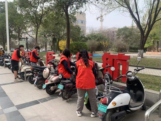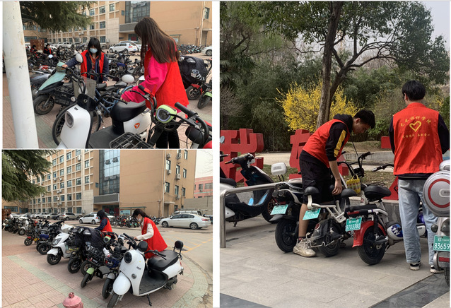 本次志愿活动中,各位志愿者分别对东四、西五、教三等教学楼门口的众多电动车进行有序整理,对随意停放的电动车搬放到指定停放点,对停放的东倒西歪的电瓶车扶正并摆放整齐。同时,志愿者们积极引导同学们骑行后自觉将电动车停放在规定的停车区,并向他们普及了关于正确停放电动车的安全知识,让他们认识到正确停放电动车的重要性和必要性。志愿者用实际行动感染身边的同学,文明出行、文明停放,积极带头践行文明健康的生活方式,共同维护校园文明秩序。