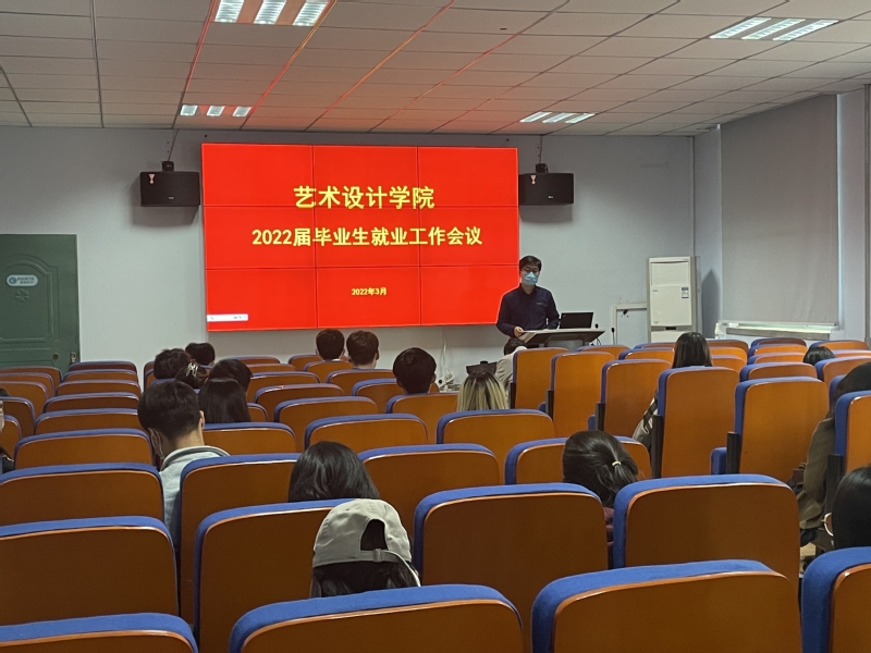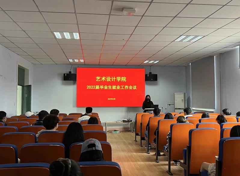 为进一步做好2022届毕业生就业指导工作,帮助毕业生了解就业形势,做好就业规划,3月16日至3月18日,艺术设计学院在东风校区东四楼301室分专业、分时段举行2022届毕业生就业工作会议,学院党委副书记贾红雨、团委书记、毕业班辅导员孙丰、就业专职辅导员陈梦涵以及全体毕业生参加了本次会议。会议由孙丰主持。