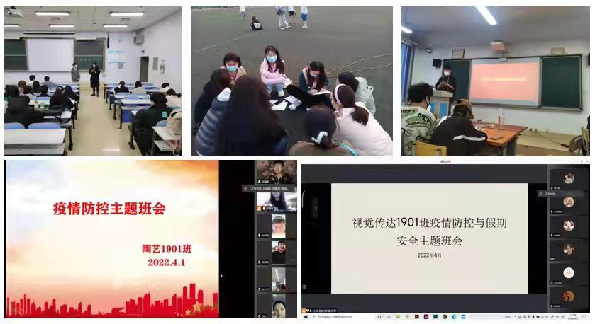 为扎实做好疫情防控工作,保障学生生命安全、身体健康和校园稳定,3月31日—4月2日,艺术设计学院各年级通过线上线下分批次召开疫情防控主题班会。