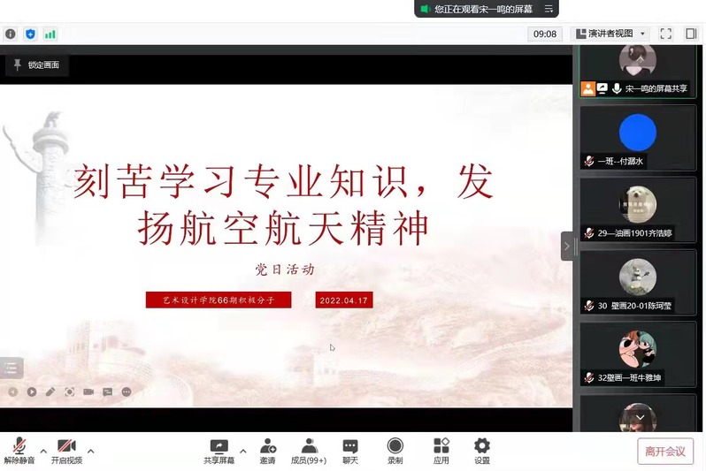 4月17日,艺术设计学院各支部组织开展“刻苦学习专业知识,发扬航空航天精神”主题党日活动,各支部党员同学积极参与了本次活动。