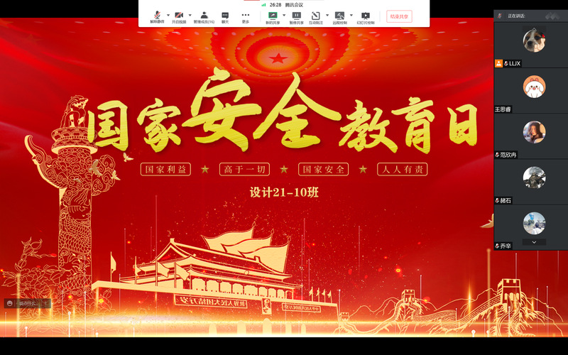 活动以团支部为单位进行,同学们结合当前疫情防控要求,通过主题团课、观看视频、交流研讨、知识竞答等方式,认真学习了国家安全对社会发展的重大意义,更加深刻地领会了习近平总书记“总体国家安全观”重大战略思想的深刻意义。大家体会到站在新的历史起点上,面对百年未有之大变局,我国国家安全的内涵和外延比历史上任何时候都要丰富,维护国家安全和社会稳定的任务十分艰巨。