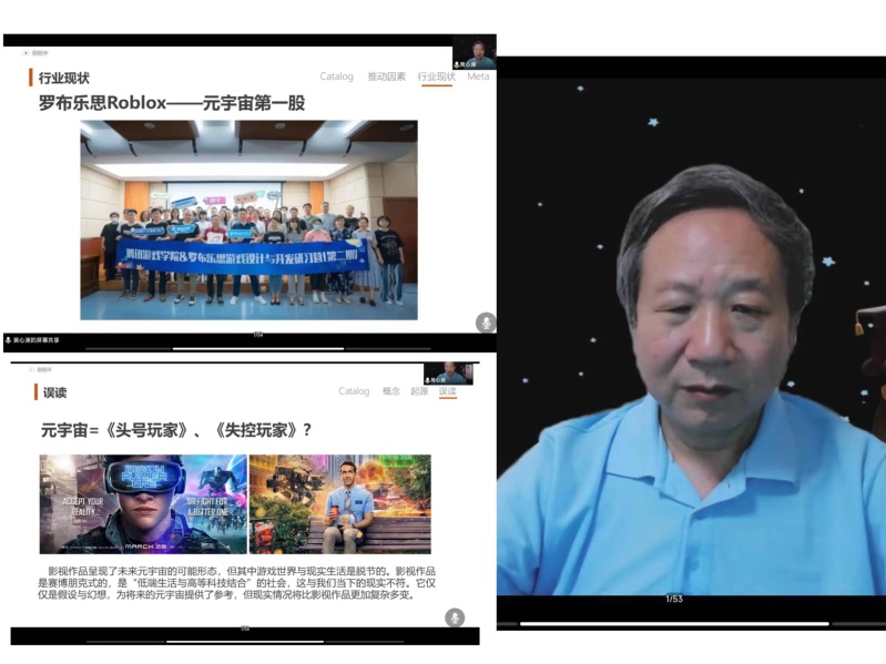 讲座后,曹阳院长总结指出,黄院长有关“大动画”案例的分析、实践经验对同学们的创作极具启发性,有关“元宇宙”知识的详细讲解,打破了“元宇宙”的神秘性,有助于研究过程中找到具体切入点。
