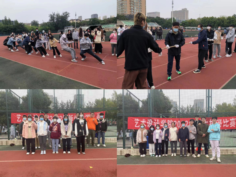 为了丰富同学们的课余生活,展现艺术设计学院学院同学积极向上的精神风貌,增强班级凝聚力,增进同学之间友谊。10月6日下午,艺术设计学院在东风校区体育场举办了2022级新生拔河比赛。孙丰和周晓浩两位新生辅导员以及全体2022级新生参与了此次活动。