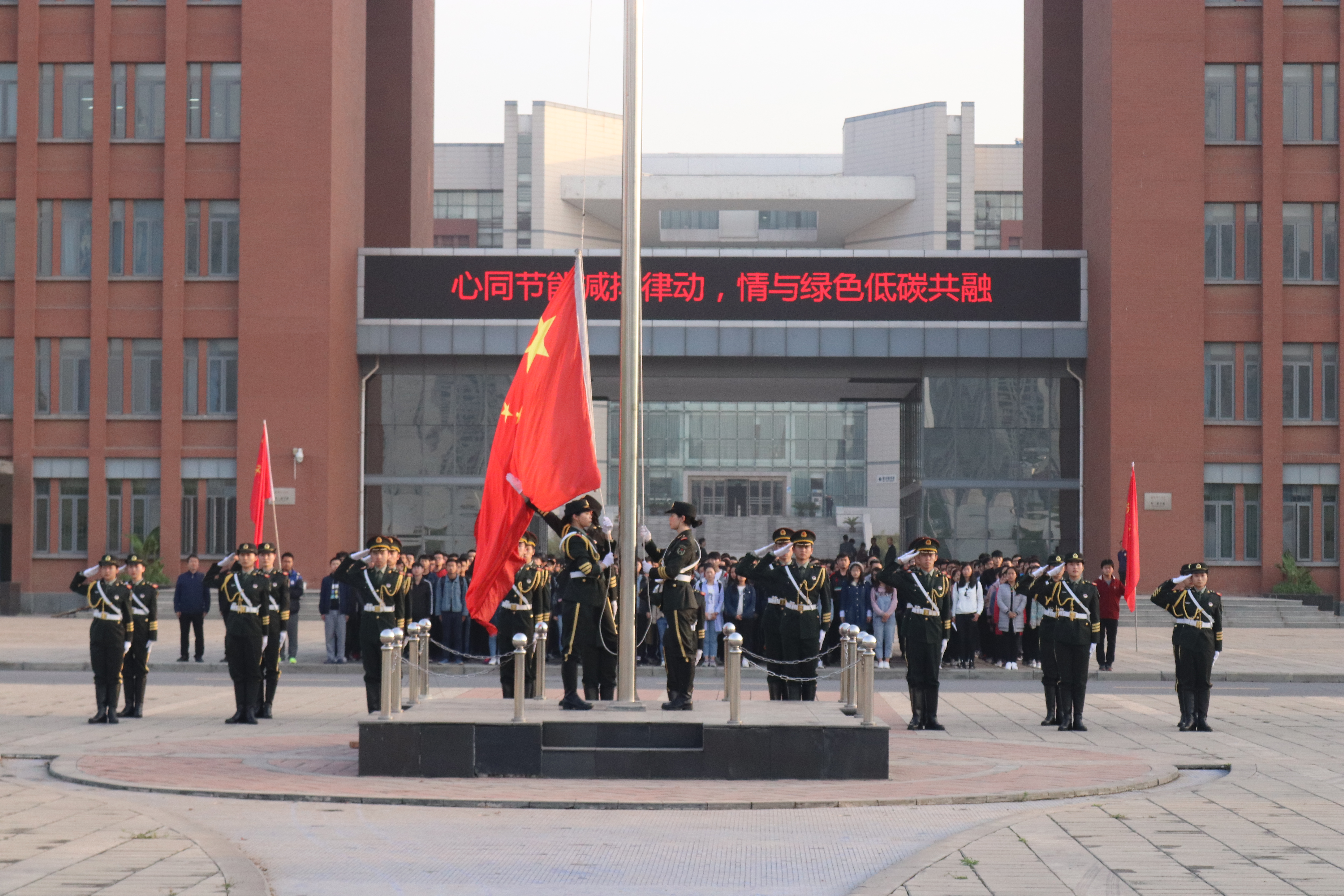 为加强学风建设,提升教学质量环境,营造奋发向上、积极进取的良好学习氛围。2018年4月15日,计算机与通信工程学院(电子信息工程学院)在图书馆前举行了“正学风、聚能量”系列之主题升旗仪式。分团委书记沈高峰老师、学院2017级全体学生及分团委全体成员参加了此次升旗仪式。