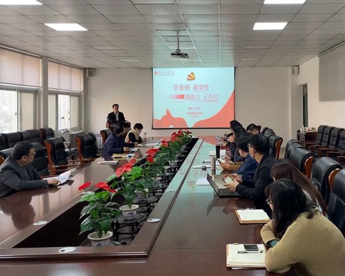 最后,宋文军书记以《学条例 强党性 提能力 正作风》为题为与会人员上专题党课,阐述了《中国共产党普通高等学校基层组织工作条例》修订的背景、过程及重点内容;明晰了《条例》对落实高校党建工作责任作出的重要制度安排;结合学院党建工作和思想政治工作实际,就如何贯彻落实好《条例》,加强基层组织建设、落实好“三会一课”制度等方面提出了建议和措施。