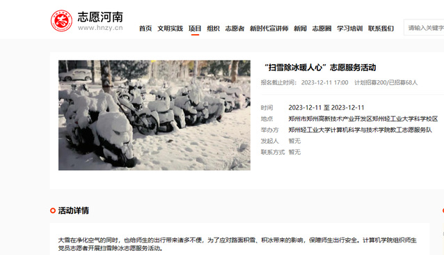 为保障校园内师生出行安全,12月11日上午,计算机科学与技术学院开展“扫雪除冰暖人心”志愿服务活动,学院教师党员和学生党员积极报名参加。