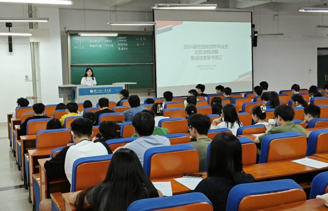 会上,李一蕾老师首先介绍了校园地贷款的相关政策、还款的具体期限、可供选择的还款方式以及因逾期还款可能产生的不良后果,重点强调了按时还款对于个人信用记录的重要性,以及对未来购房、求职等方面的影响,增强了学生们的责任感和紧迫感。随后,资助工作学生助理对登录国家开发银行助学贷款学生在线服务系统、查询贷款支付宝账号与密码、填写提前还款申请、登录还款支付宝账号还款等步骤进行了详细讲解。然后,全体贷款毕业生在学生代表的带领下进行郑重宣誓,并在诚信宣誓书上签字,承诺将严格遵守国家助学贷款的相关规定,自觉履行合约,按期偿还贷款和利息,珍惜个人信用,维护母校声誉,自强不息,诚信做人。最后,李一蕾老师和学生助理针对贷款毕业生在还款流程中存在的疑问和困惑进行了耐心、细致、明确的解答,确保每位学生都能彻底明白还款的相关细节,避免出现误解或疏漏。