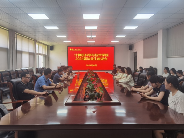 6月13日上午,计算机科学与技术学院在计算机楼213会议室召开2024届毕业生座谈会,学院班子成员、各系部主任、辅导员及2024届毕业生代表参加了座谈会,座谈会由学院党委副书记刘放美主持。